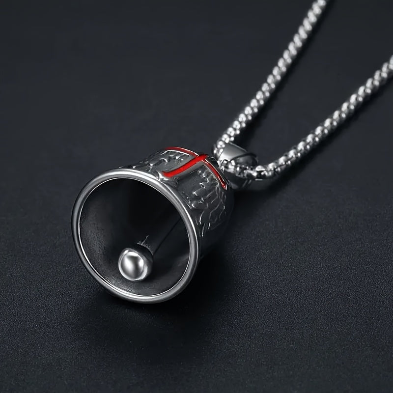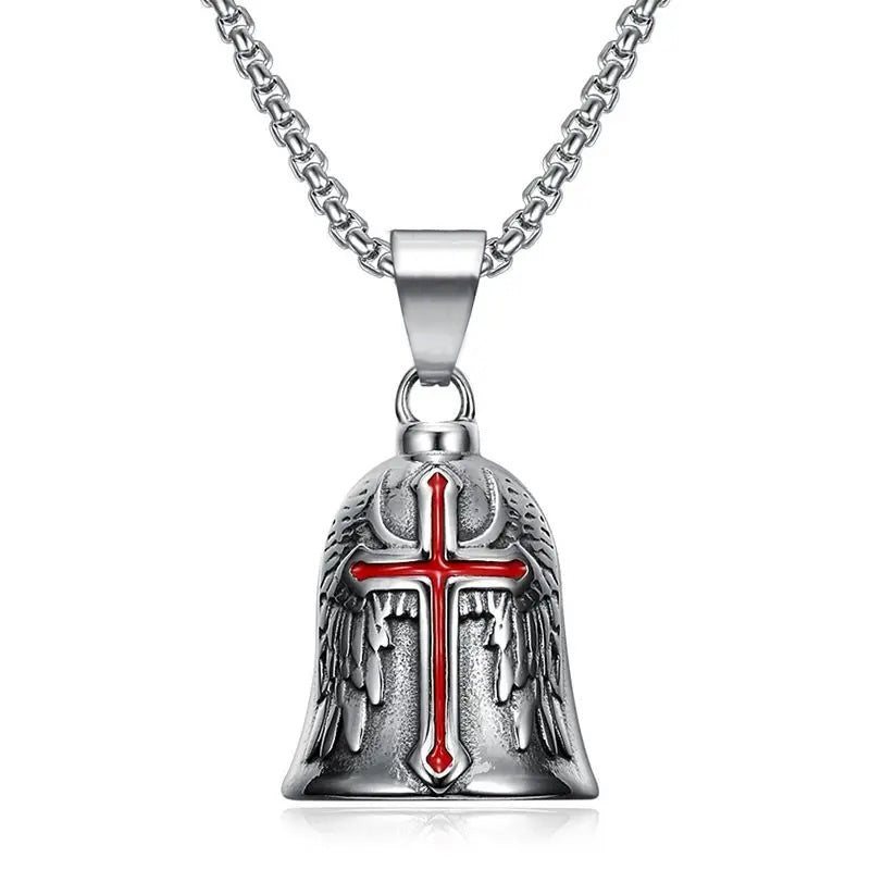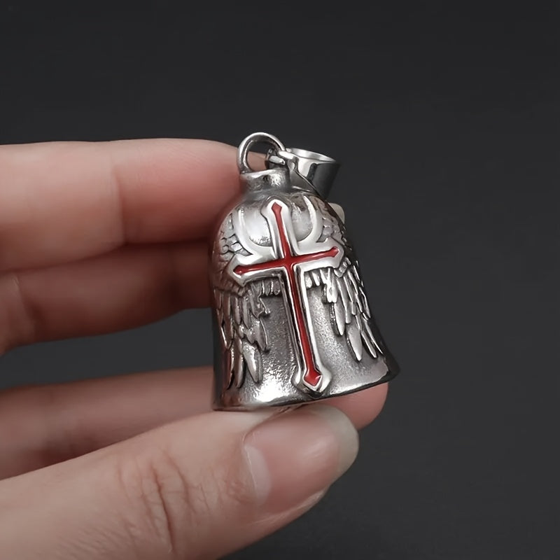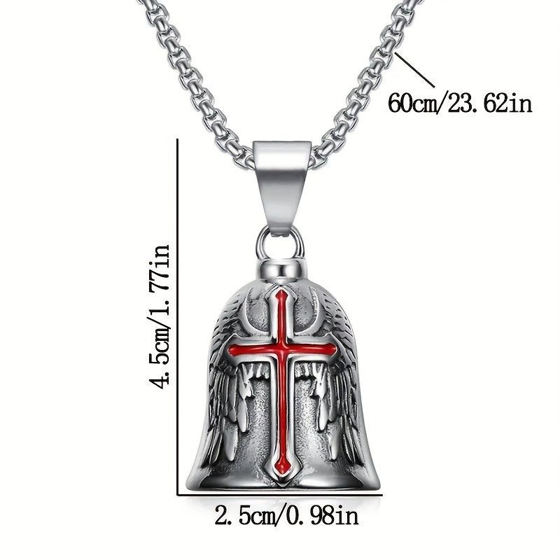 This vintage necklace features a Red Cross Wing Motorcycle Bell Pendant made of alloy, a boho lucky charm.