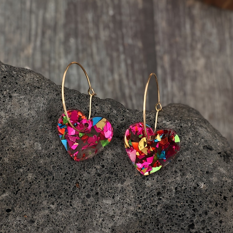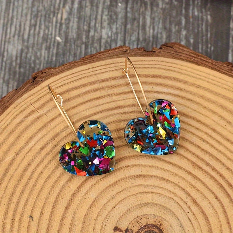 These vintage style resin heart drop earrings are a charming addition to any outfit. Made with high-quality iron ear needle, the mosaic material adds a touch of elegance and style. They are perfect for gifting your loved ones.