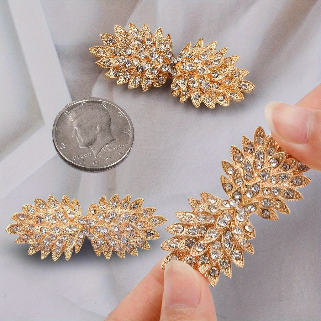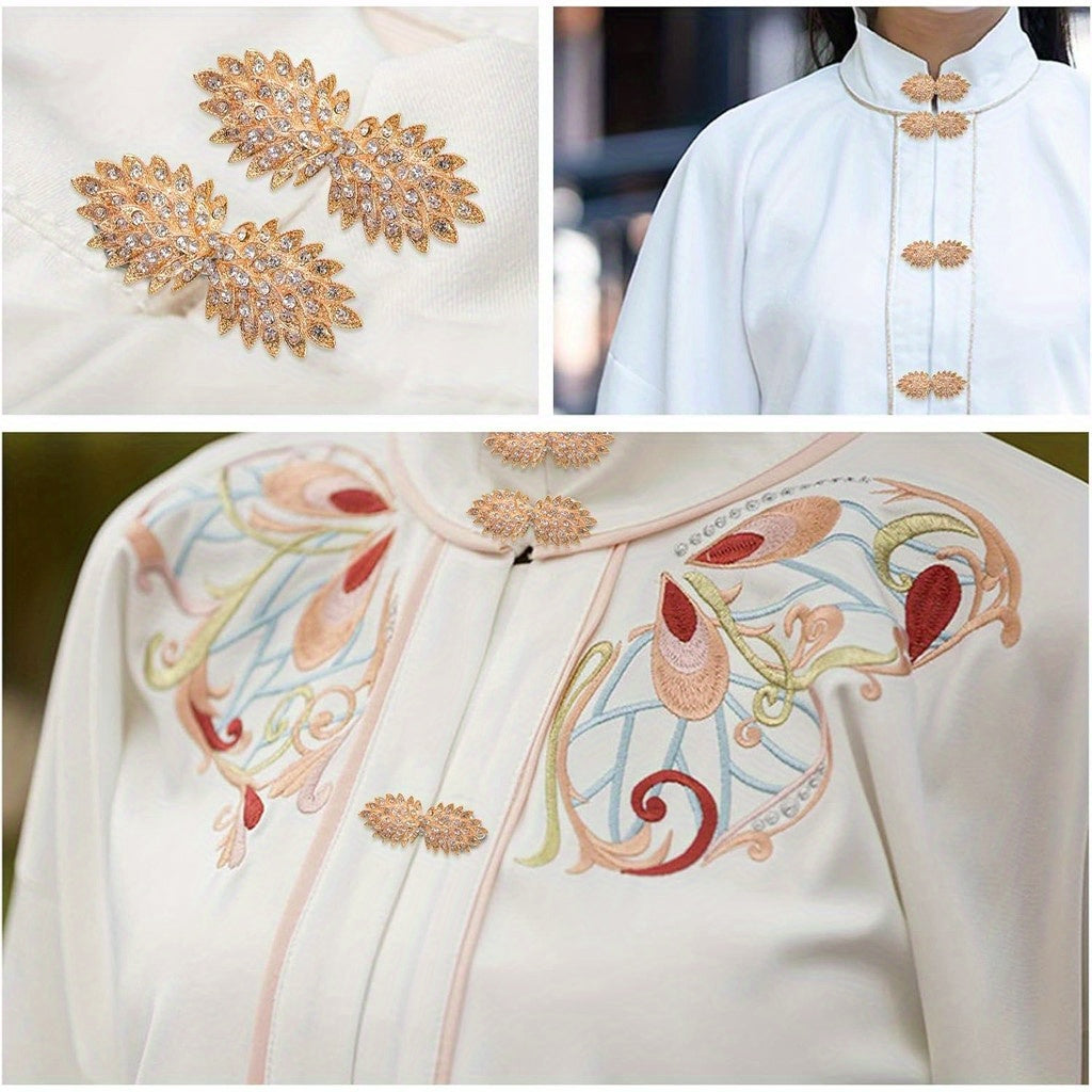Add a touch of vintage glamour to your cloak with these golden rhinestone fasteners. The sunburst design adds a stylish flair to any outfit.