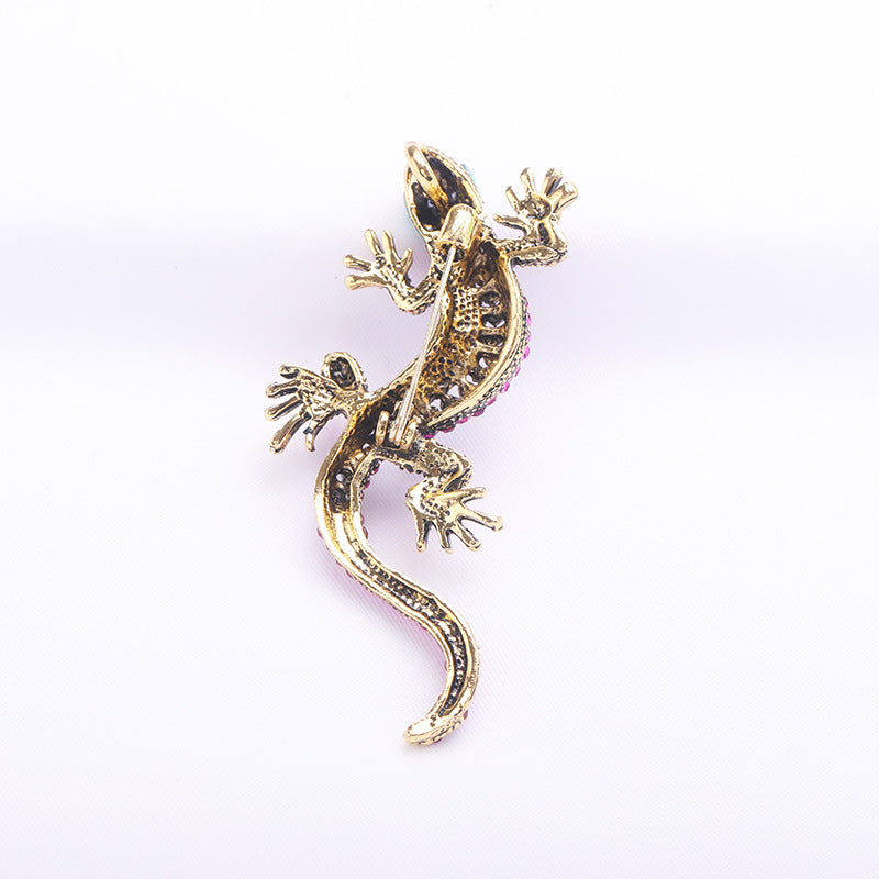 Add a touch of glamour to your outfit with this vintage rhinestone lizard brooch. Made with high-quality crystals, this creative animal pin is a perfect accessory for your clothes.