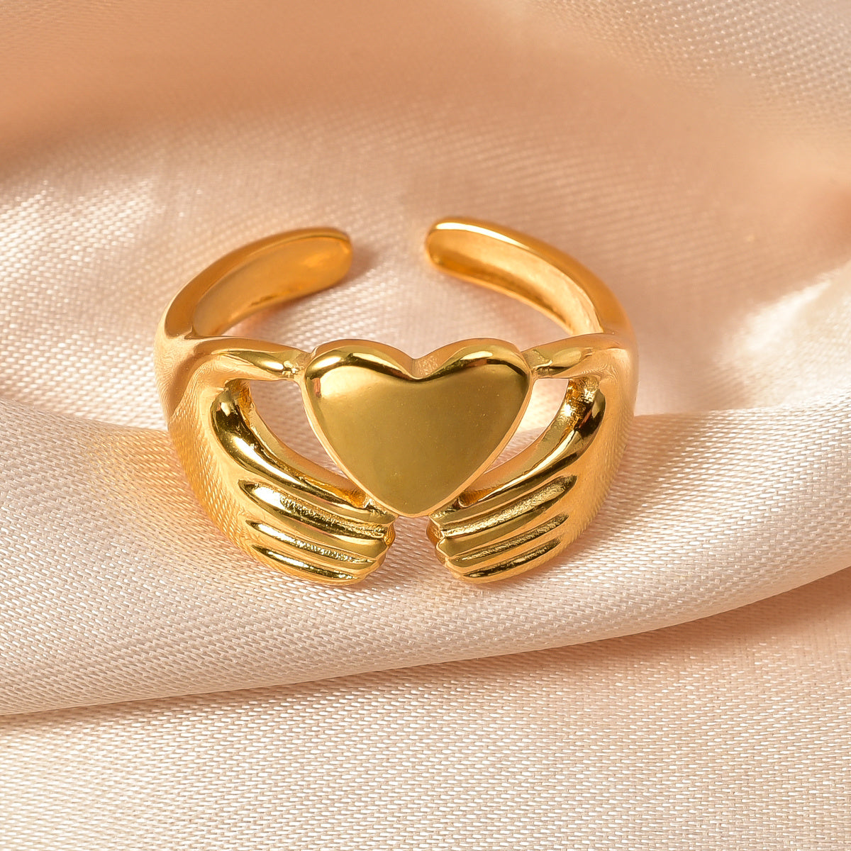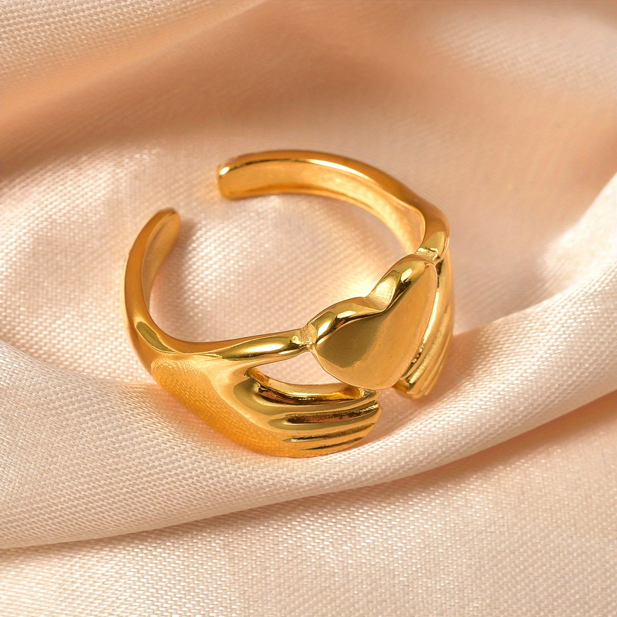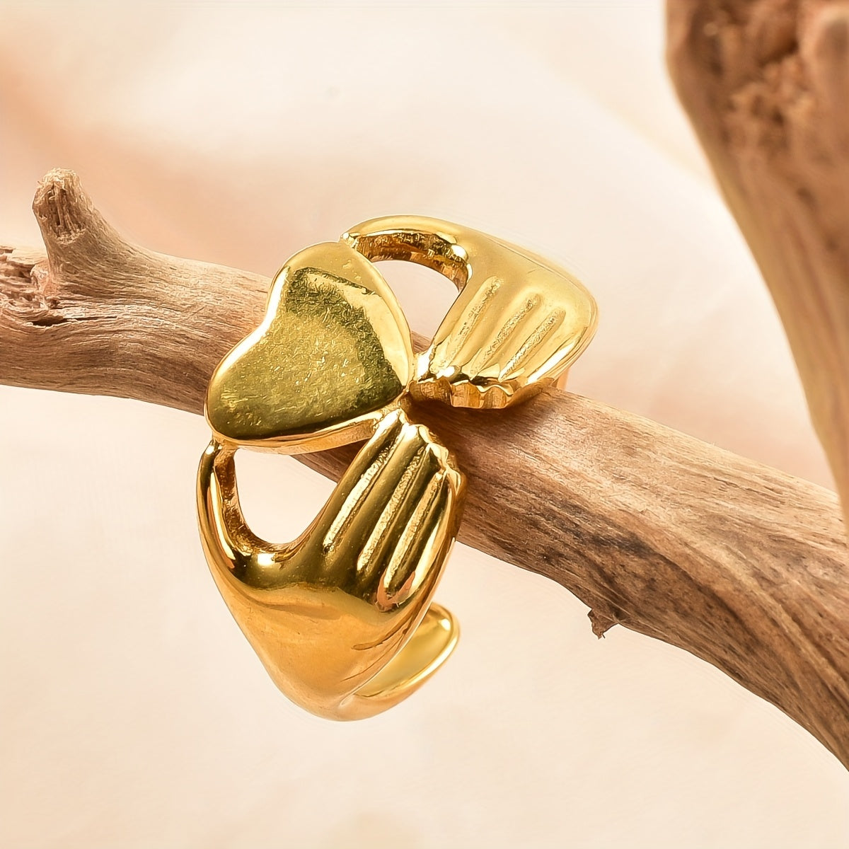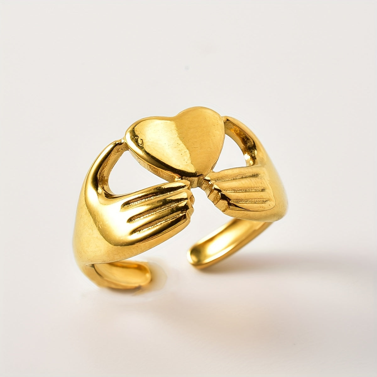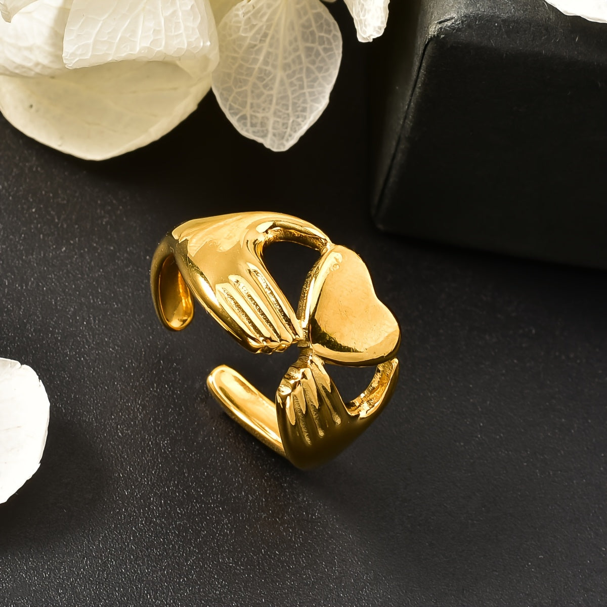 Vintage Romantic Couple's Ring Hands Holding Heart Golden Tone Metal Unisex