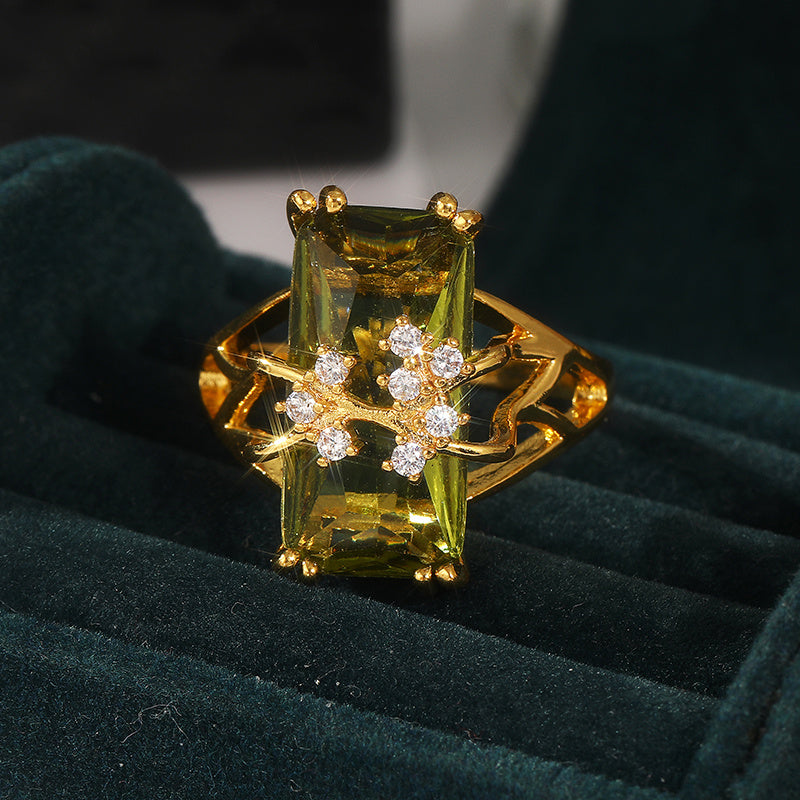 Vintage Roostertail Emerald Green Wide Face Ring with Clear Accents