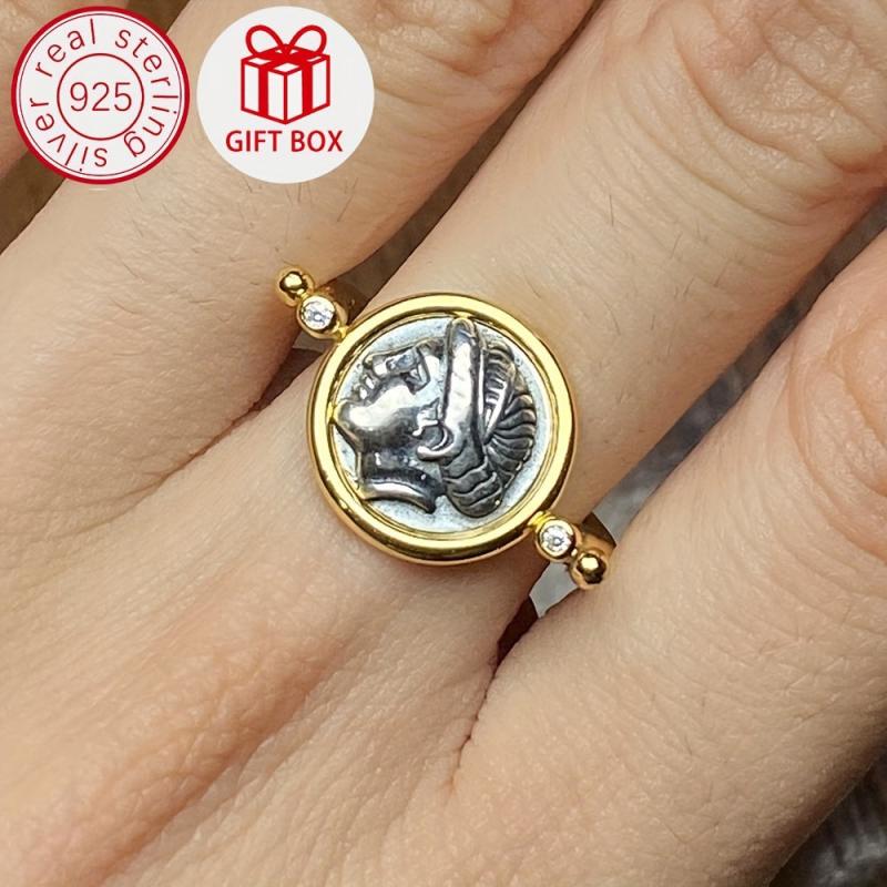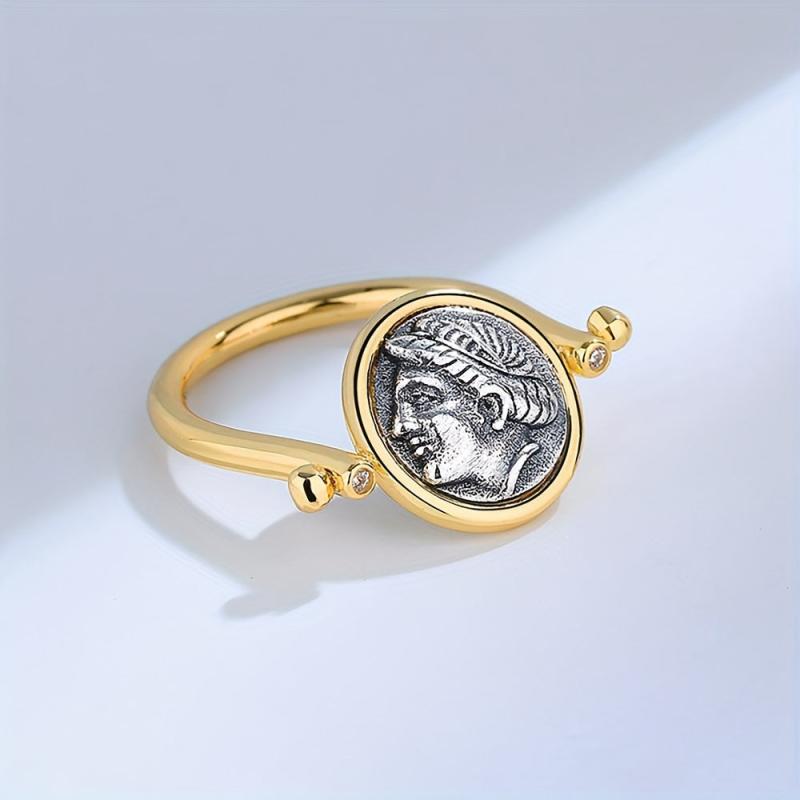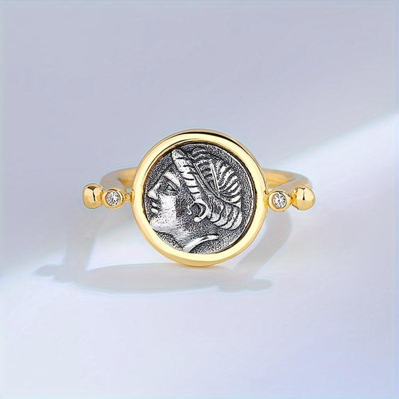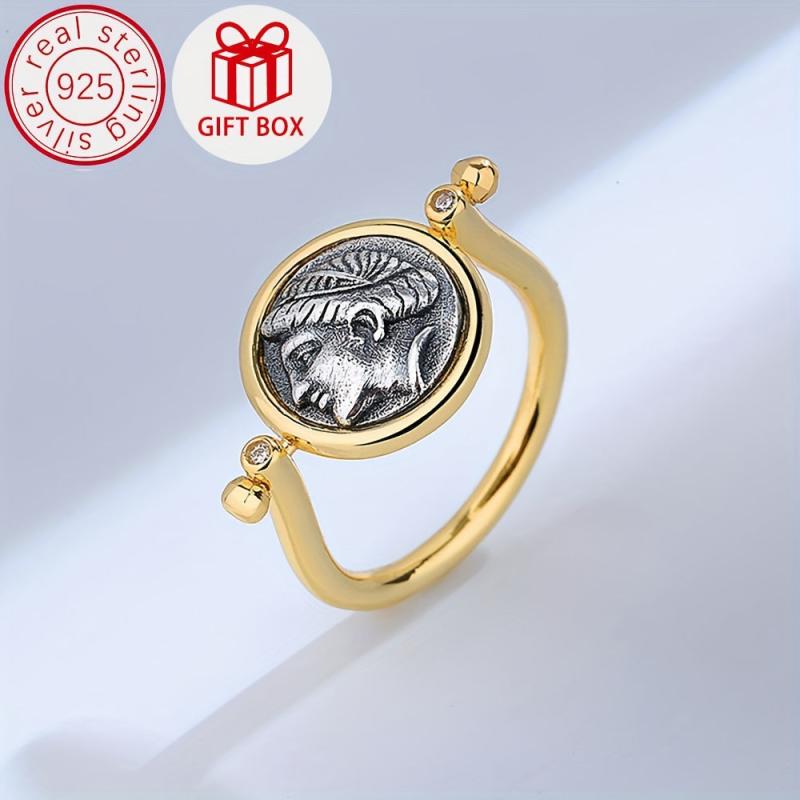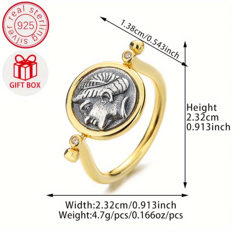 Elevate your style with this vintage-inspired double sided rotatable ring featuring a zirconia April birthstone. Crafted from S925 sterling silver and 18K golden plated, this coin jewelry piece exudes luxury and elegance.
