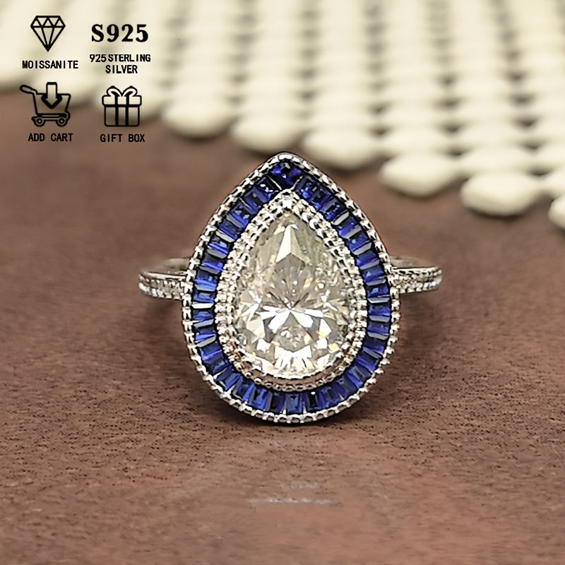 Embrace retro glamour with this stunning palace women's ring featuring a 2 carat pear-shaped Moissanite. The intricate design exudes elegance and charm, making it a perfect choice for special occasions.
