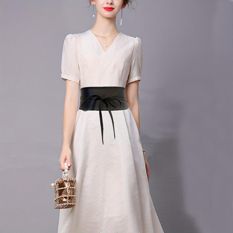 Add a touch of vintage charm to your outfit with this classic wide belt featuring a bowknot lace-up design. Made of PU material, this waist seal is perfect for women's dresses and coats.