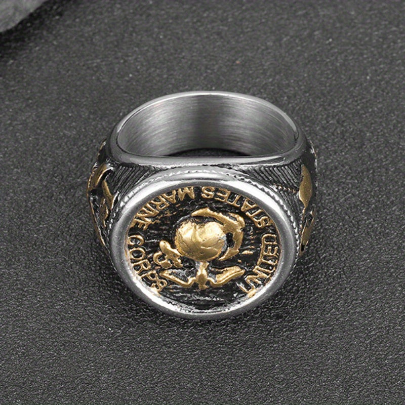 This men's ring features a striking eagle design in 18K gold plated stainless steel. Ideal for daily wear or special occasions, this ring is a stylish addition to any outfit.