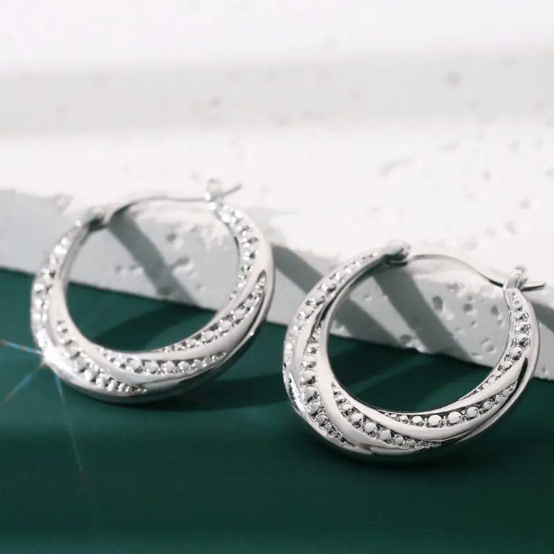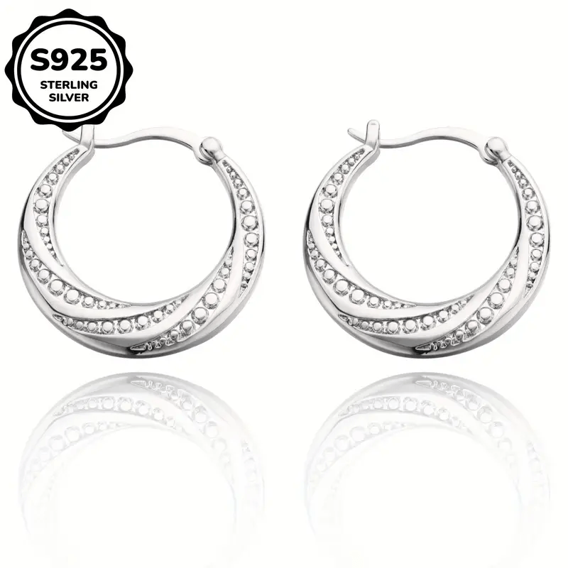 Elevate your look with these 19mm hoop earrings featuring a twisted vintage design. Crafted from solid 925 sterling silver, these huggie hoops will add a touch of elegance to any outfit.