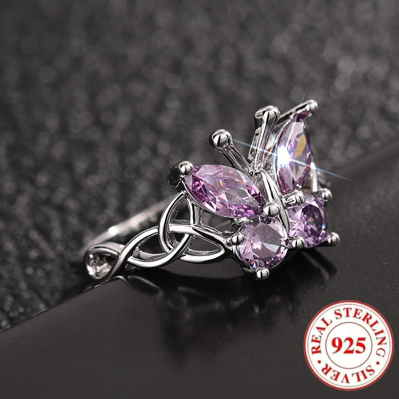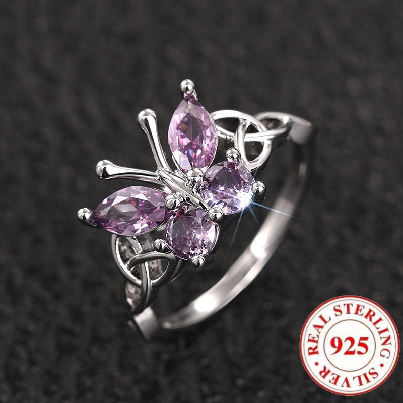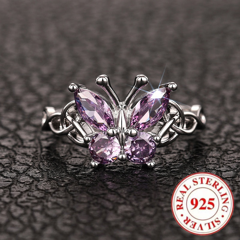 This stunning 925 silver butterfly ring features sparkling cubic zirconia stones. A perfect gift for birthdays or special occasions.