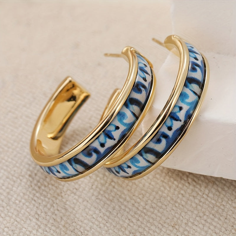 These stunning hoop earrings are inspired by vintage bohemian style and are ideal for daily wear or gifting. They feature a porcelain-inspired design that adds a touch of elegance to any outfit.
