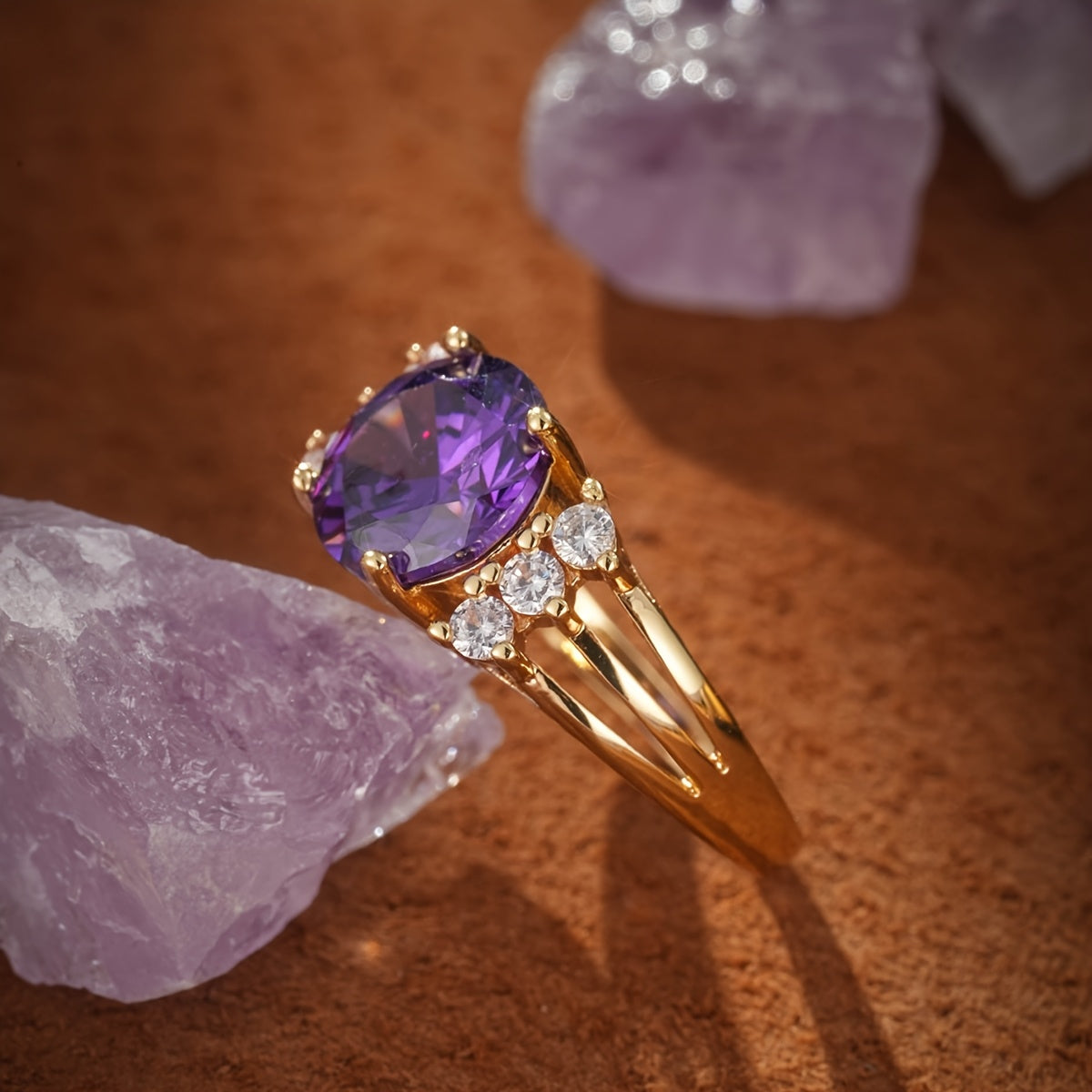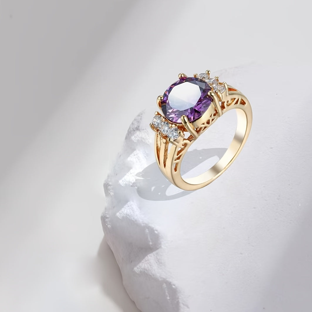 This synthetic crystal ring is perfect for parties, banquets, or gifting. It features a vintage design with sparkling accents and a golden tone metal.