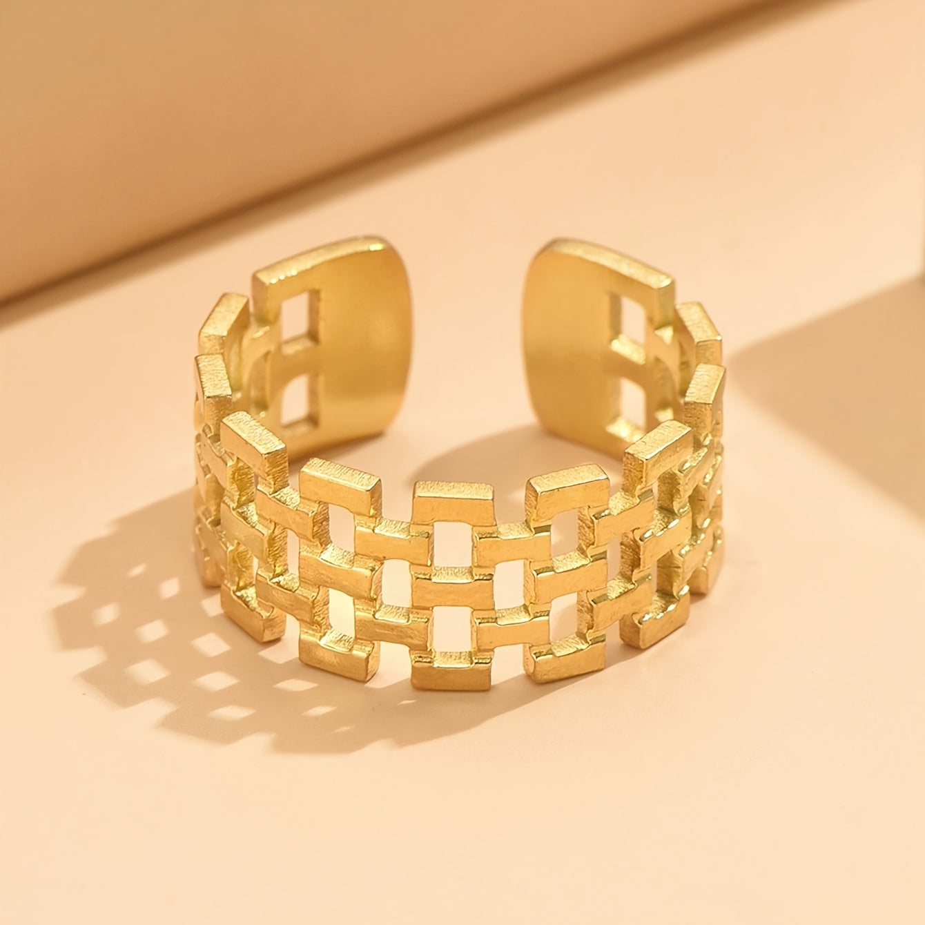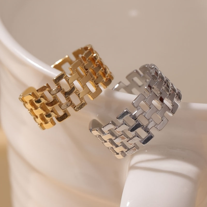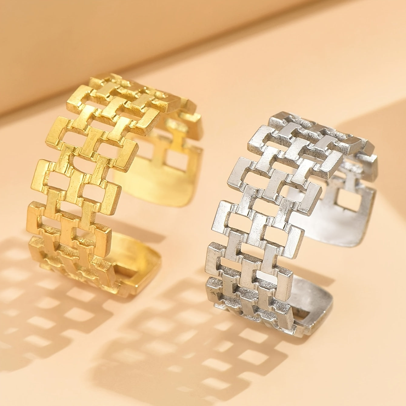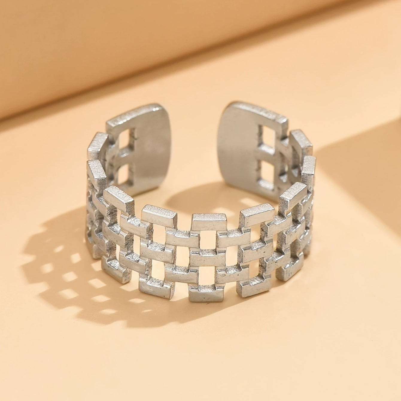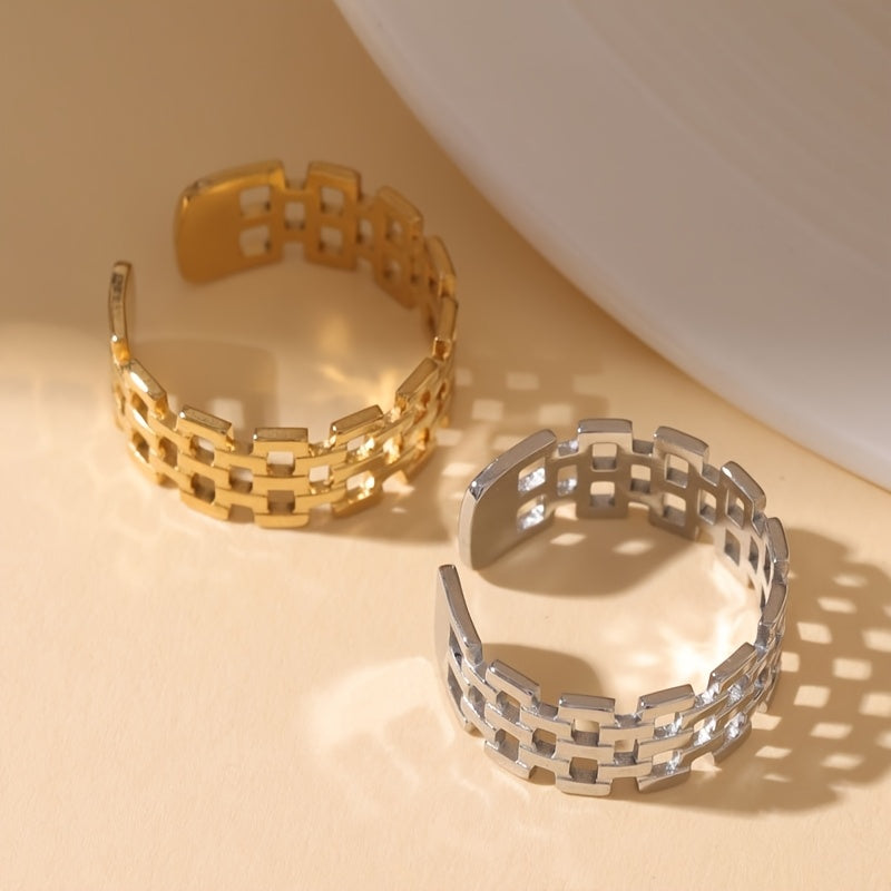 Elevate your casual attire with this durable and stylish ring inspired by vintage jewelry. Made from 304 stainless steel, this ring features a double row square chain design that adds a touch of sophistication to any outfit.