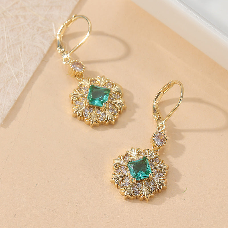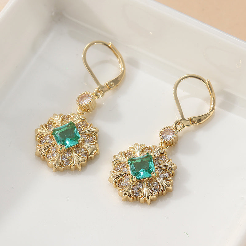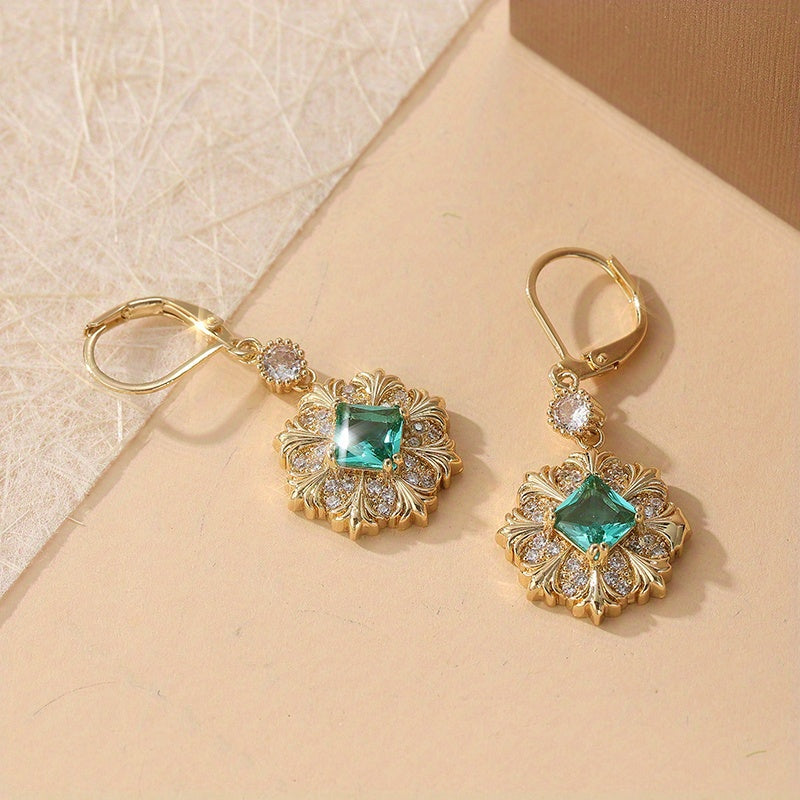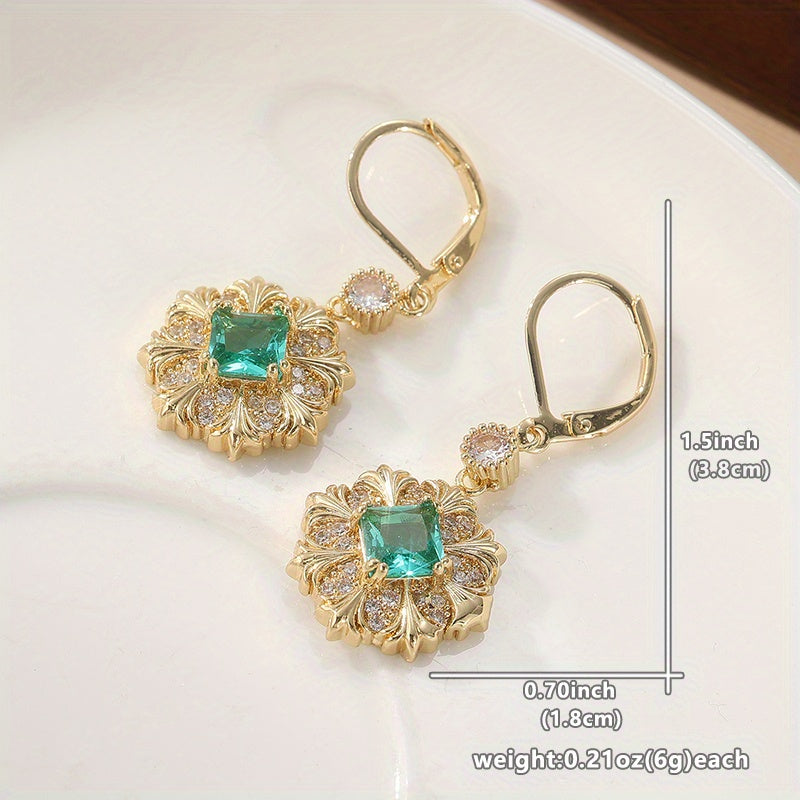 Enhance your daily look with these vintage-inspired earrings featuring copper inlaid with synthetic zirconia. The golden-plated finish adds a touch of elegance, perfect for everyday wear and travel.