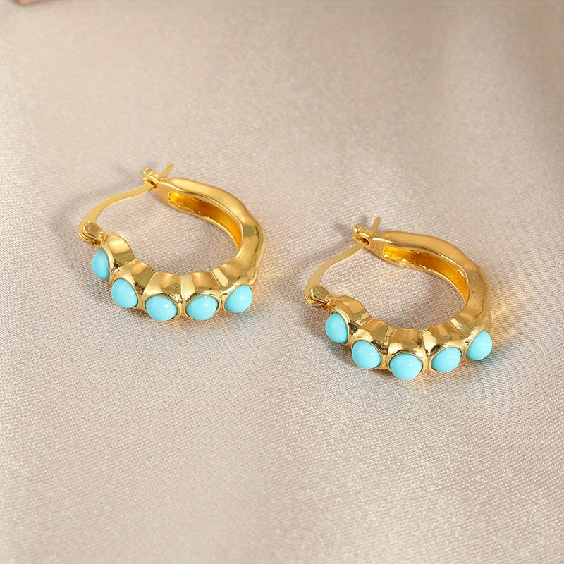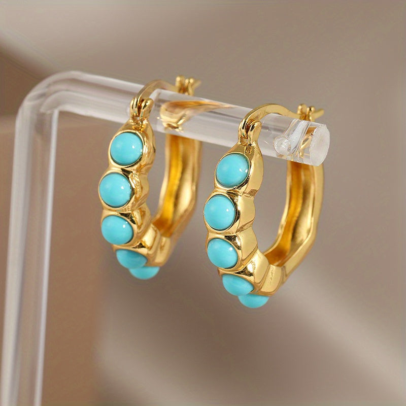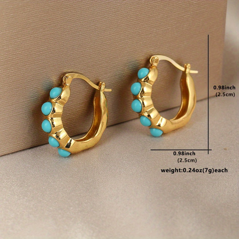 Beautifully designed hoop earrings with synthetic turquoise accents, perfect for everyday wear or special occasions. An ideal gift for women.