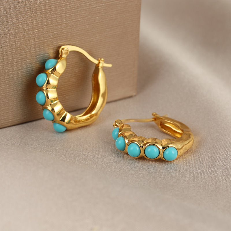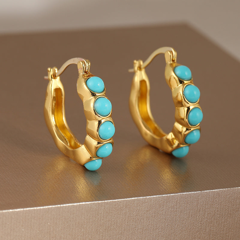Vintage Style Gold Plated Hoop Earrings with Turquoise Accents