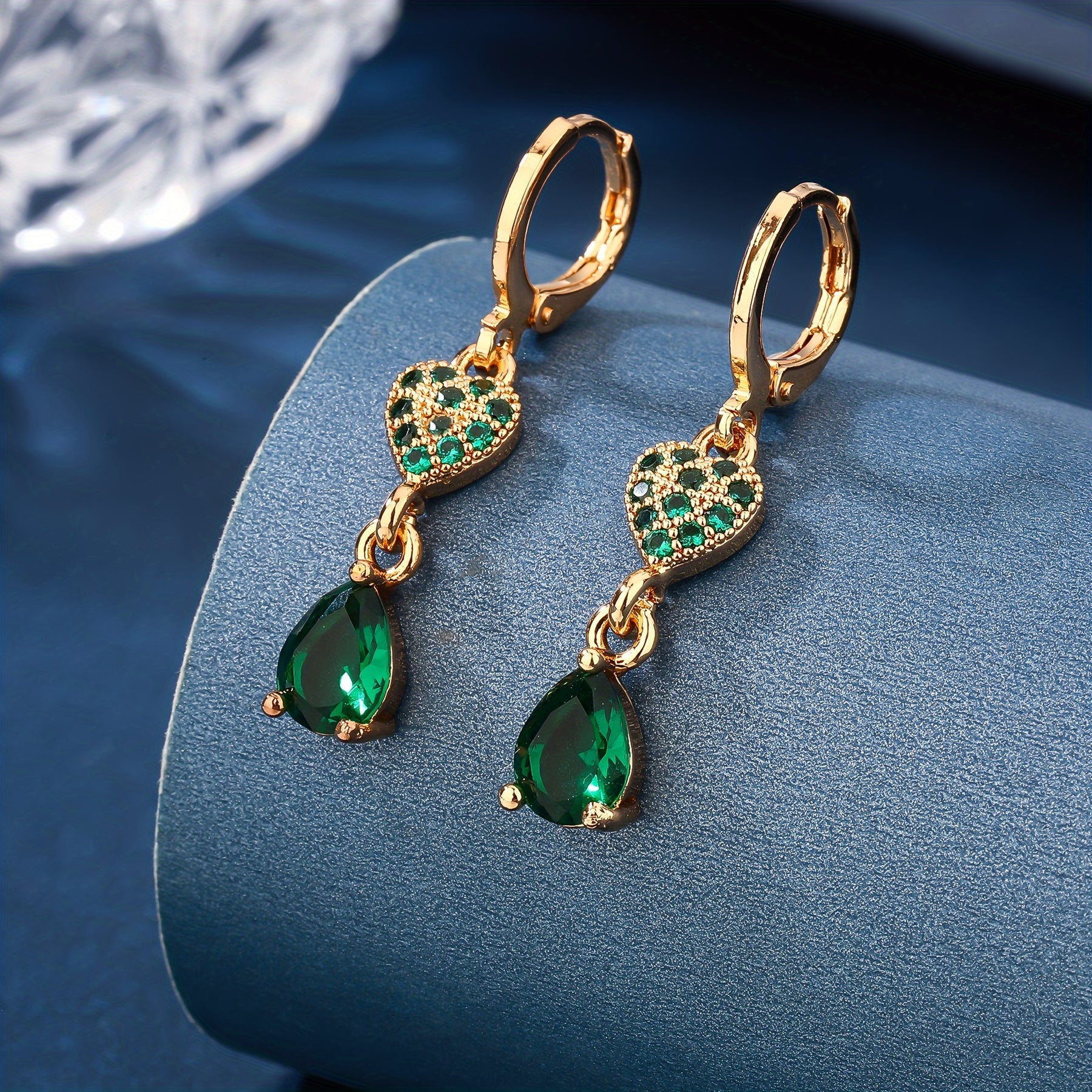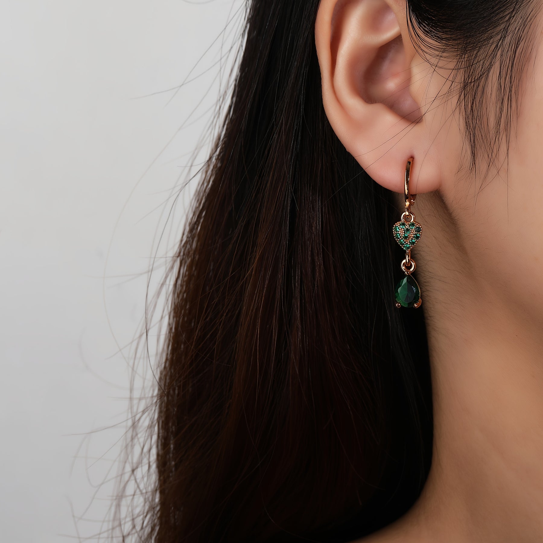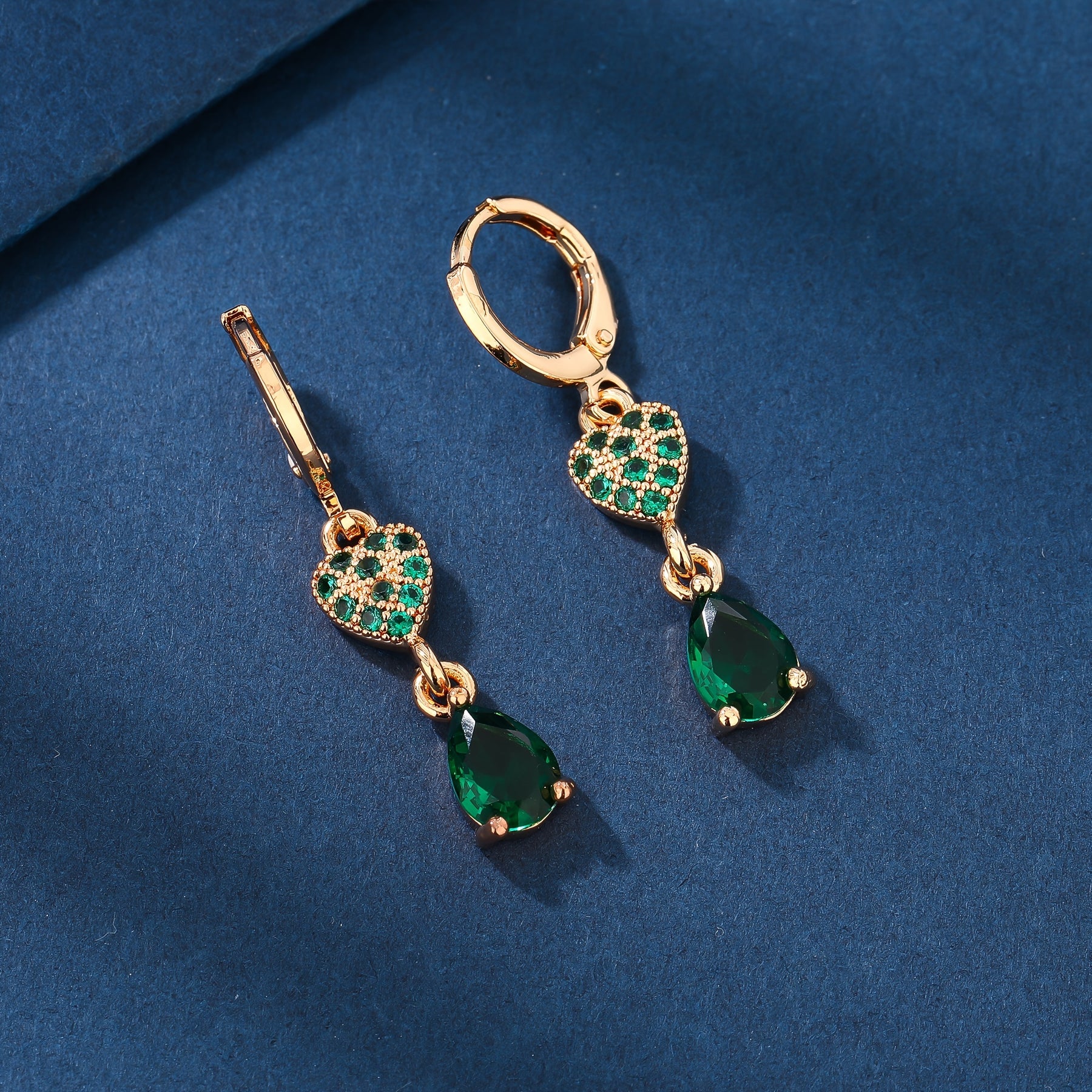 Add a touch of elegance to your outfit with these vintage style earrings. Featuring green cubic zirconia stones and 18K plated copper, these earrings are perfect for parties and casual wear.