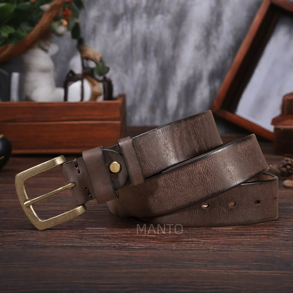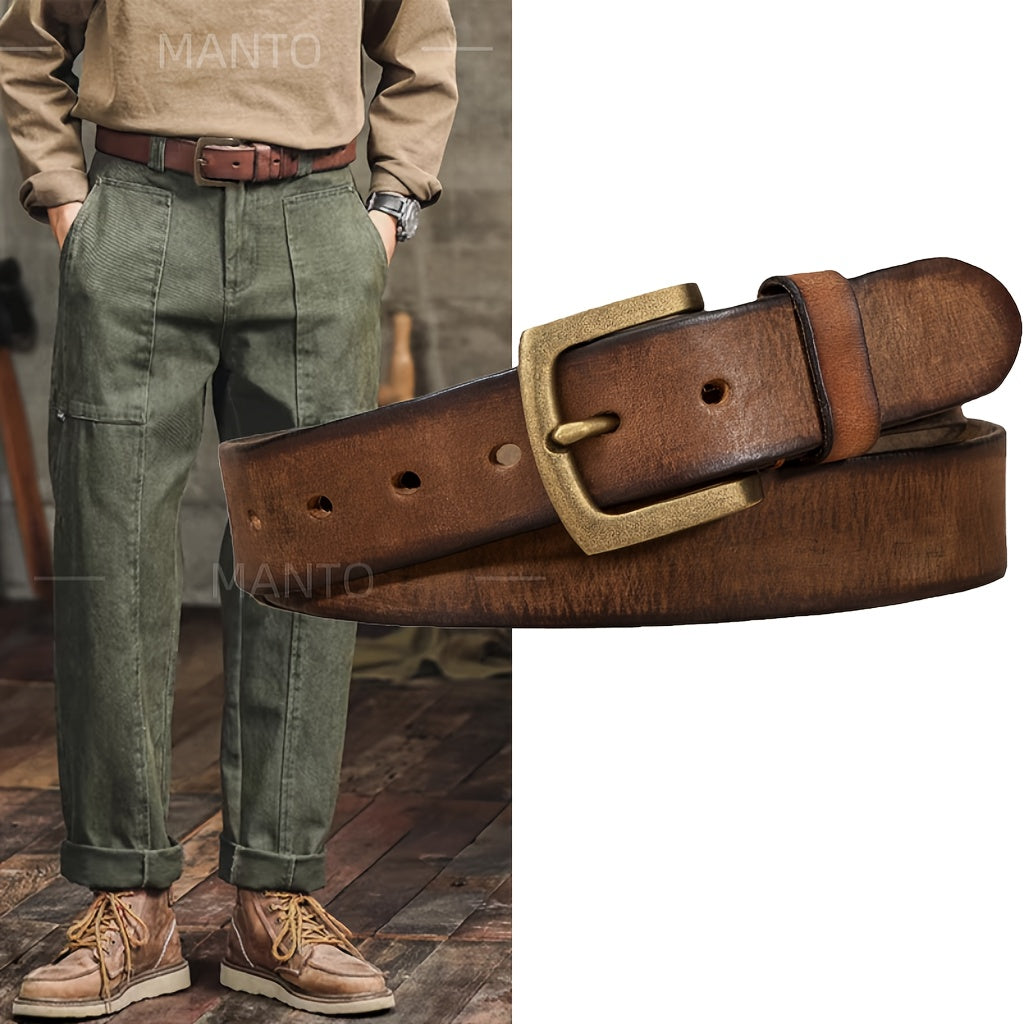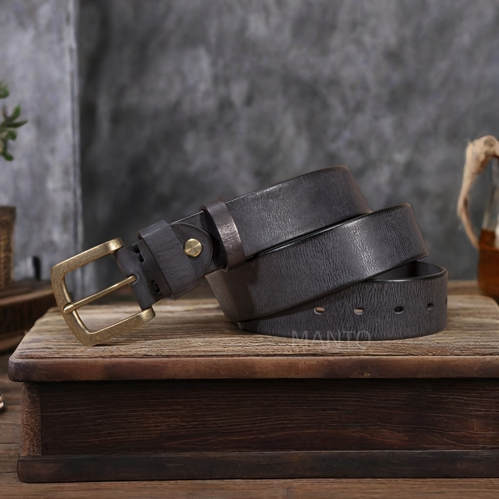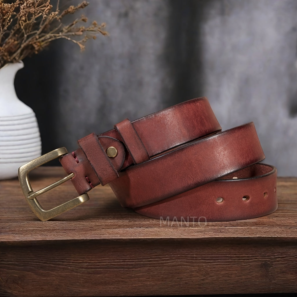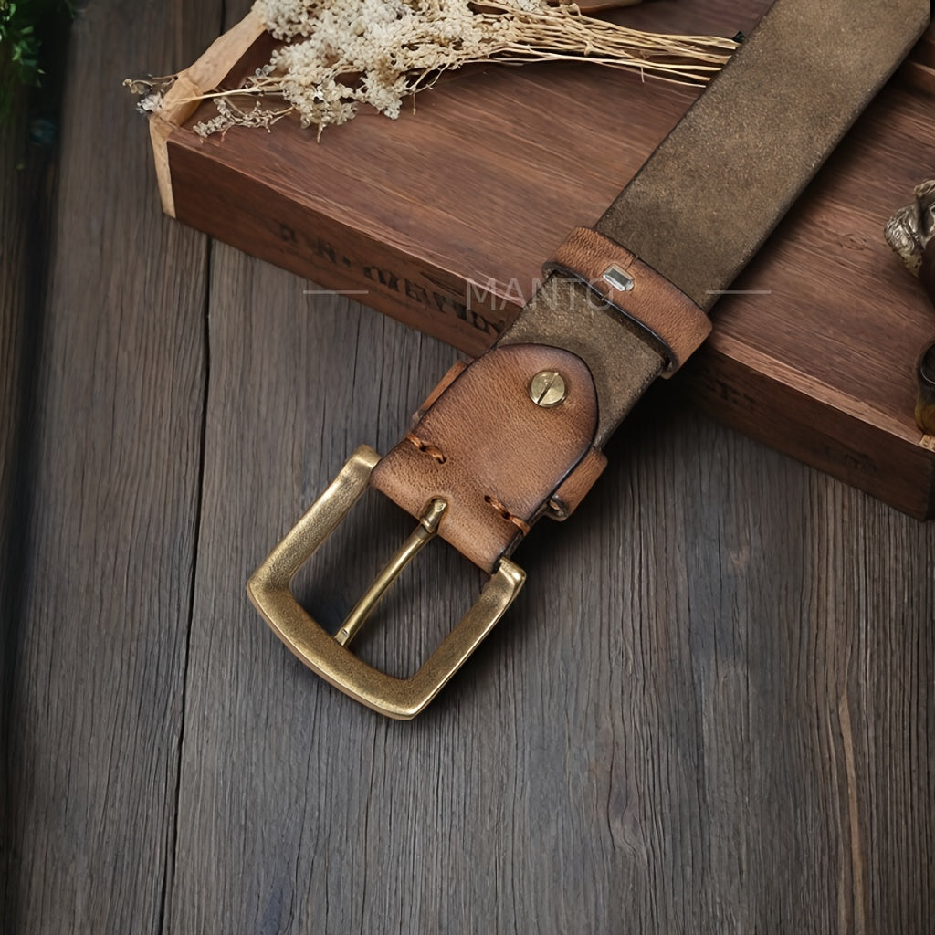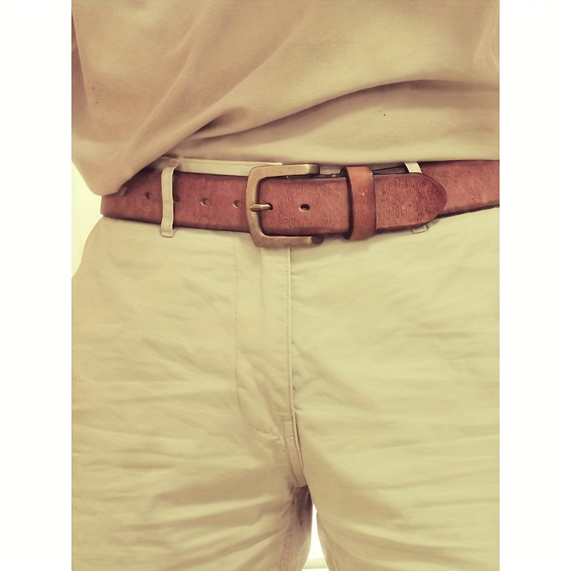 Add a touch of vintage charm to your casual attire with this adjustable leather belt. The square copper buckle adds a stylish detail to your outfit.