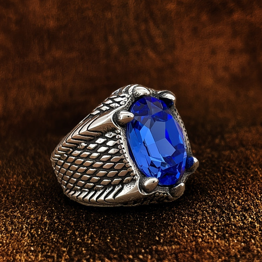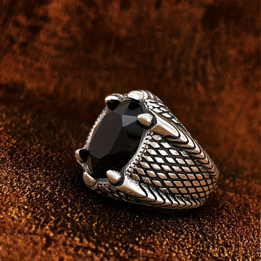 This vintage style men's ring is made of stainless steel with synthetic zirconia. It is durable, hypoallergenic, and ideal for daily wear or as an anniversary or birthday gift.