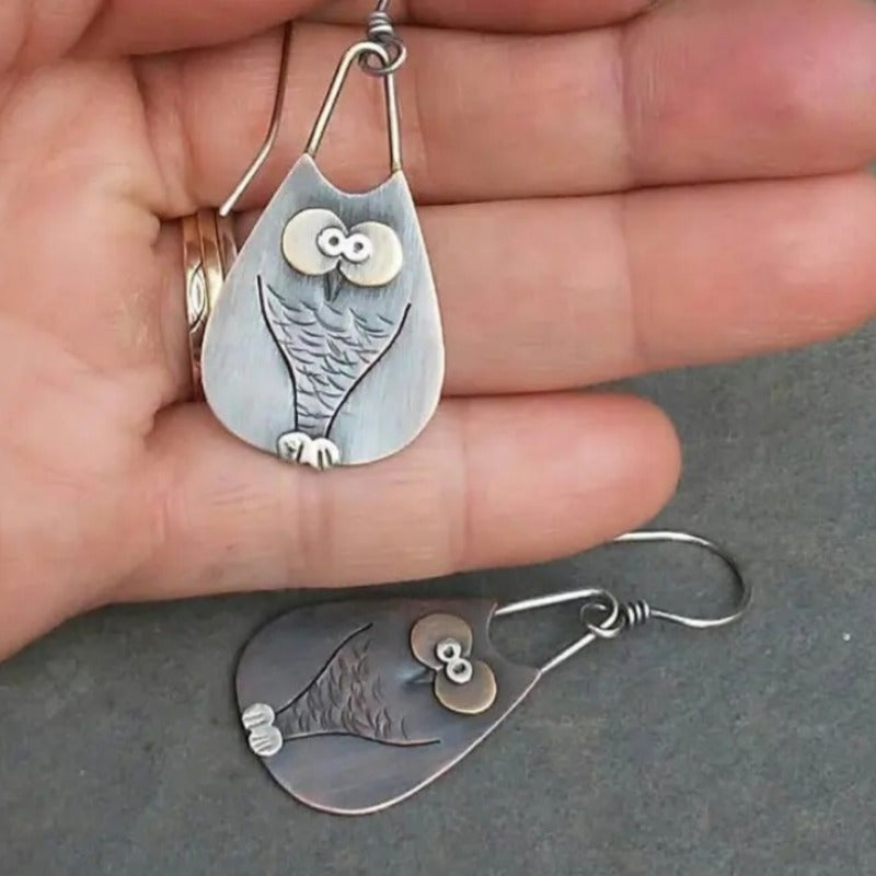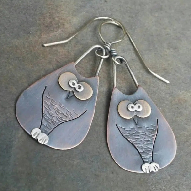 • Charming retro owl pendant earrings