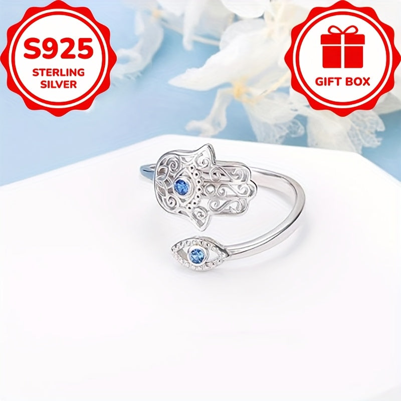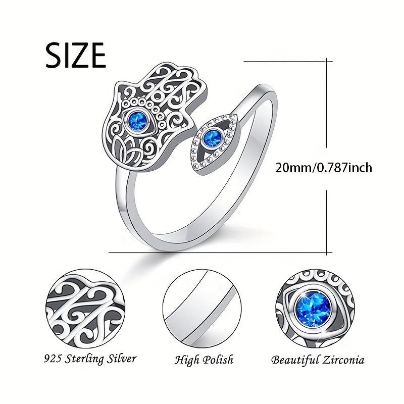 This S925 silver ring features a vintage design with synthetic zirconia inlay, suitable for daily wear and parties. The ring is adjustable to fit both men and women.