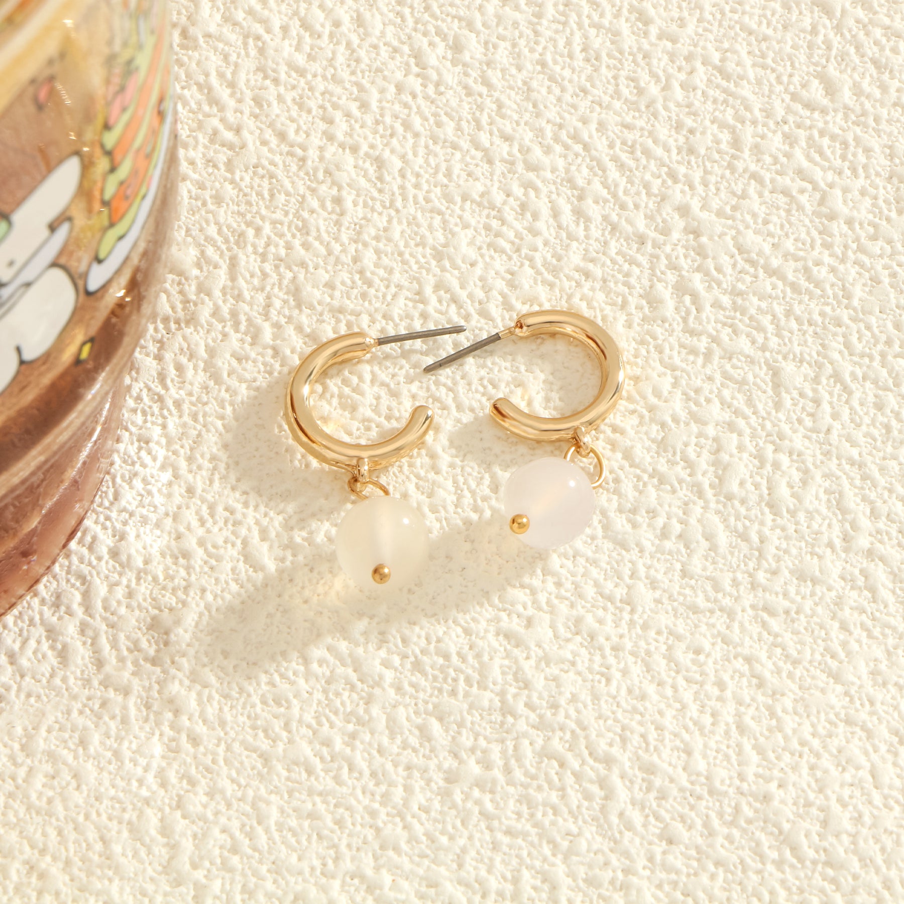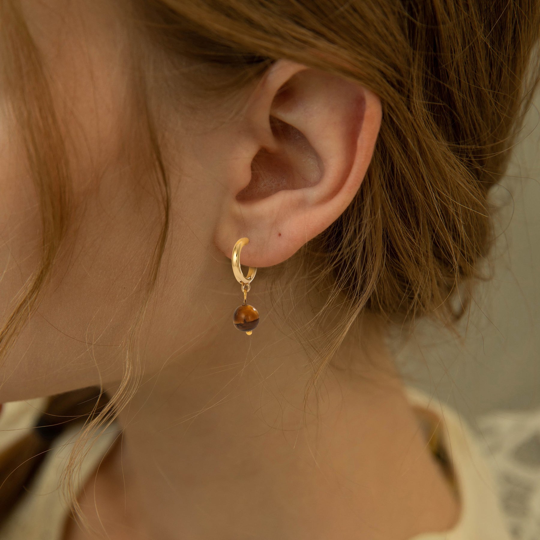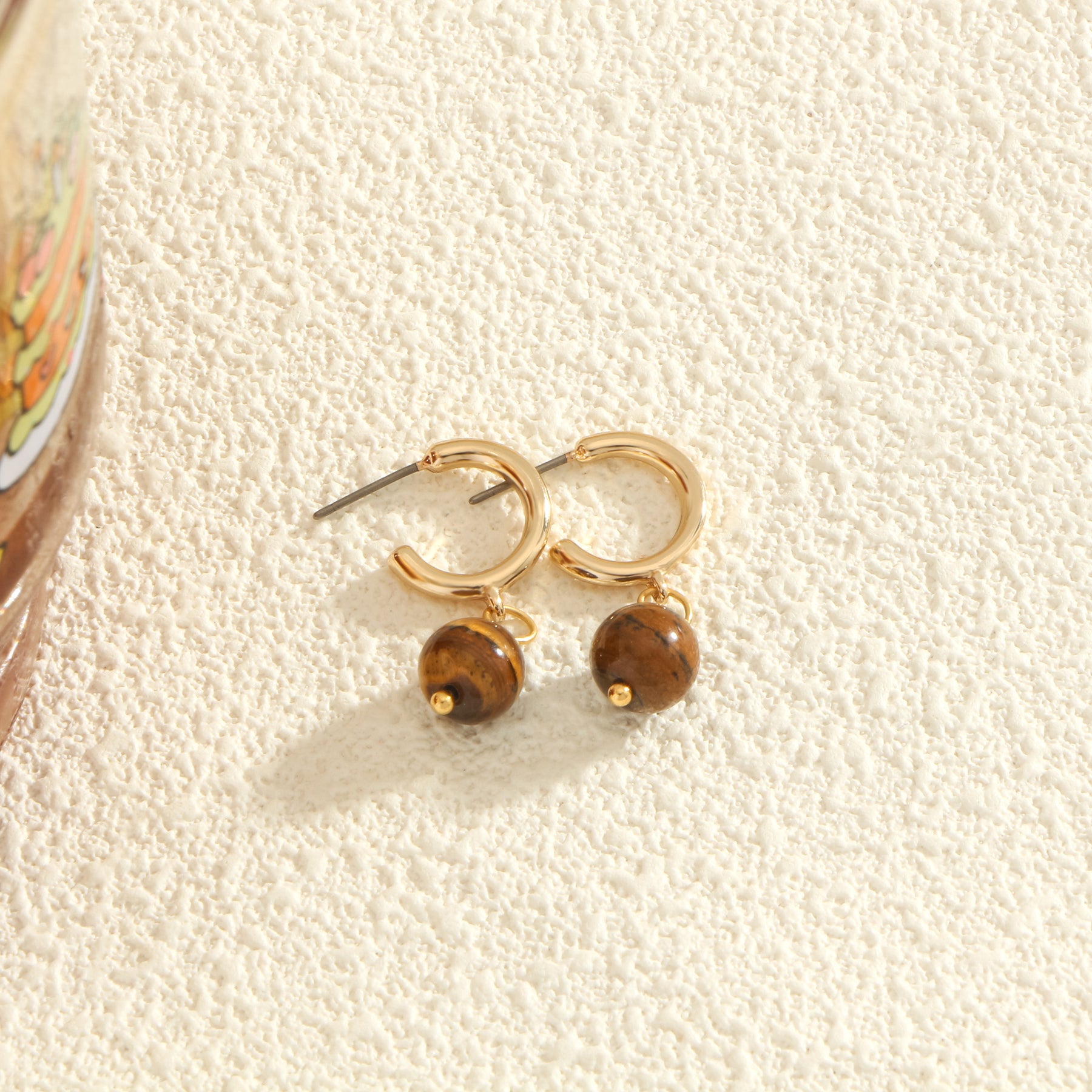 Vintage Style Women's Earrings with Brown Gemstone & Golden Finish