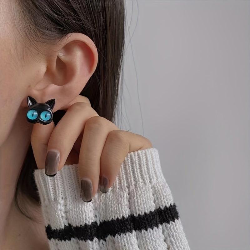 Add a touch of fun and sweetness to your look with these vintage style zinc alloy ear studs featuring cat eyes design. Perfect for daily wear and all seasons.
