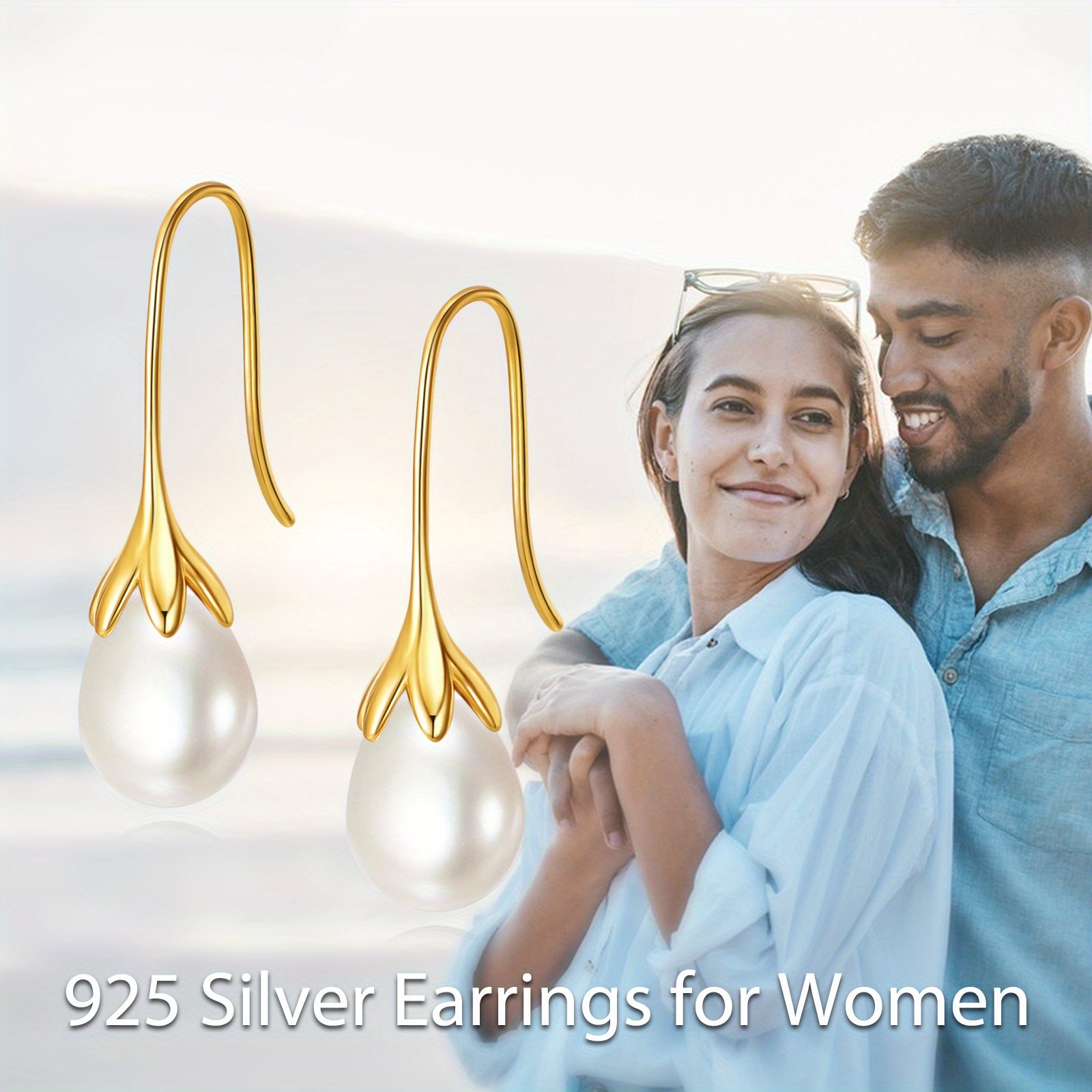 Elegant teardrop pearl earrings made of sterling silver, perfect for a birthday gift. Vintage design adds a touch of sophistication to any outfit.
