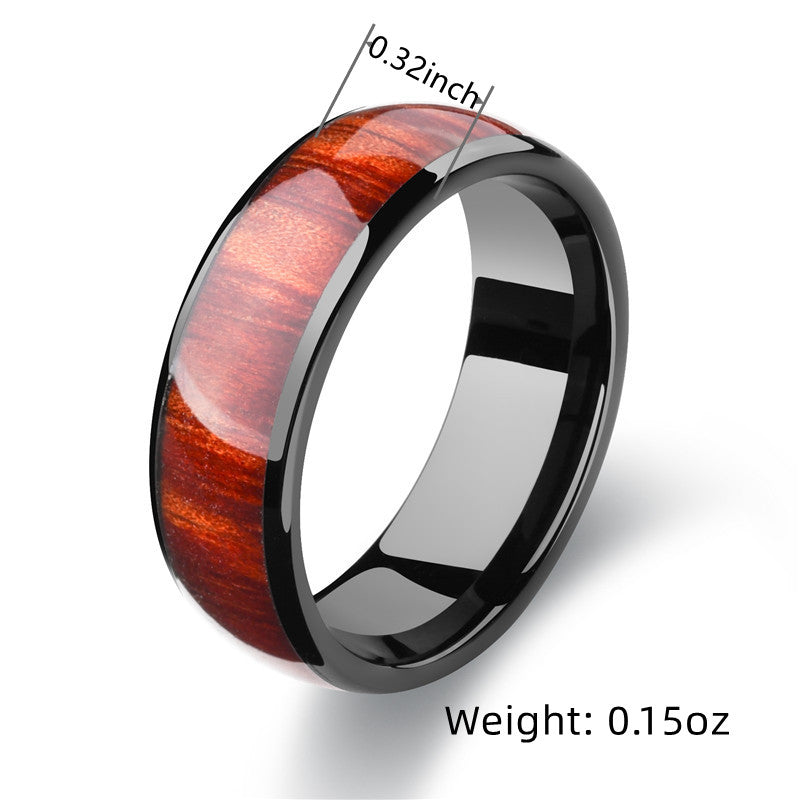 Vintage Titanium Steel Ring Wood Pattern Inlay Men's Couple Ring