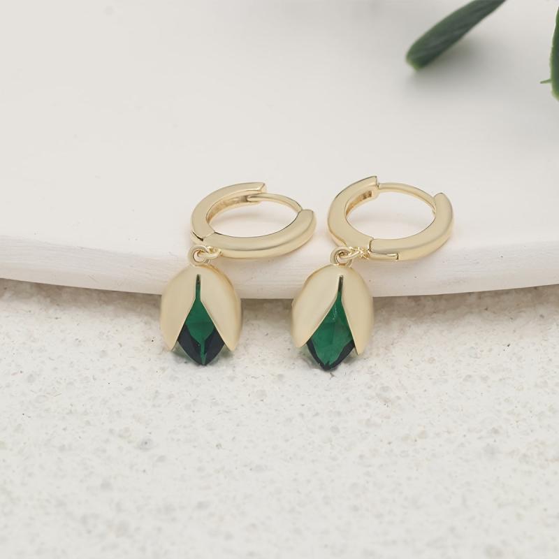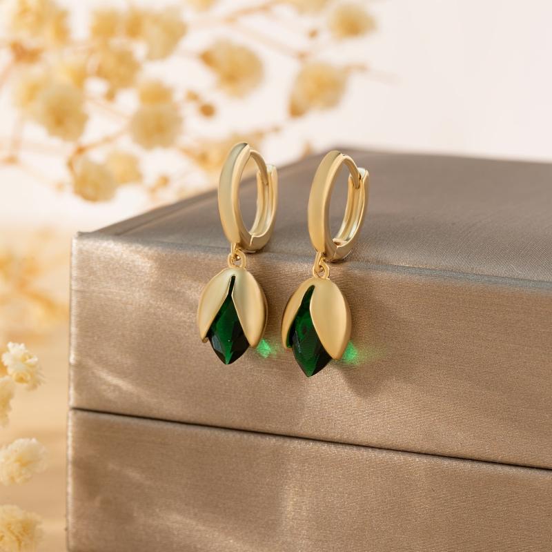 These stunning vintage-style earrings feature tulip flower drops with green zirconia accents. Hypoallergenic and nickel-free for sensitive ears.