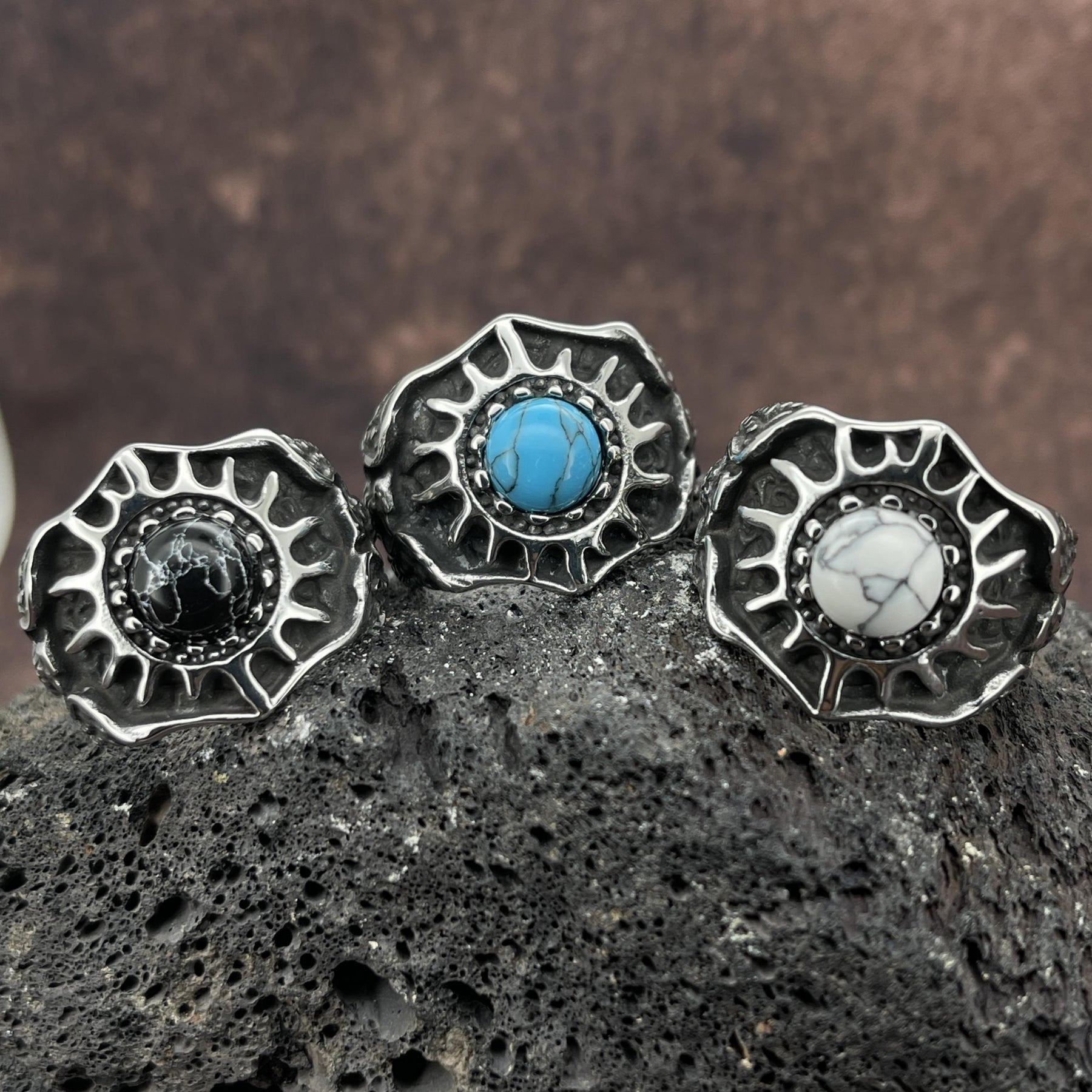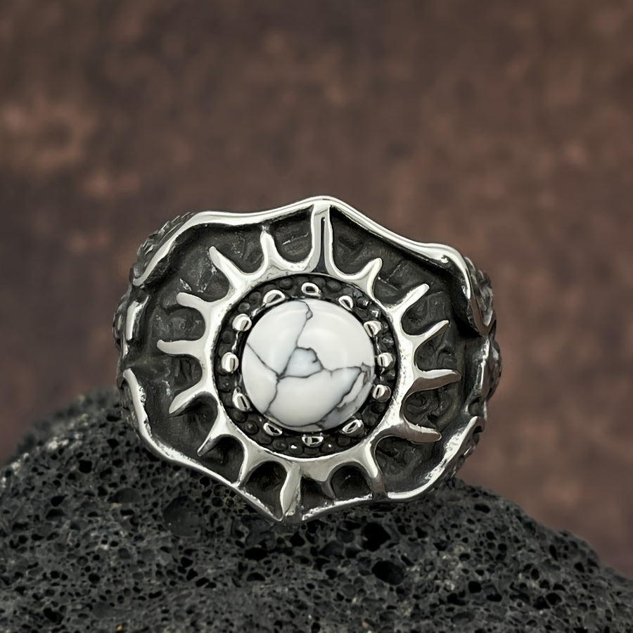 Vintage Turquoise Sunflower Stainless Steel Ring