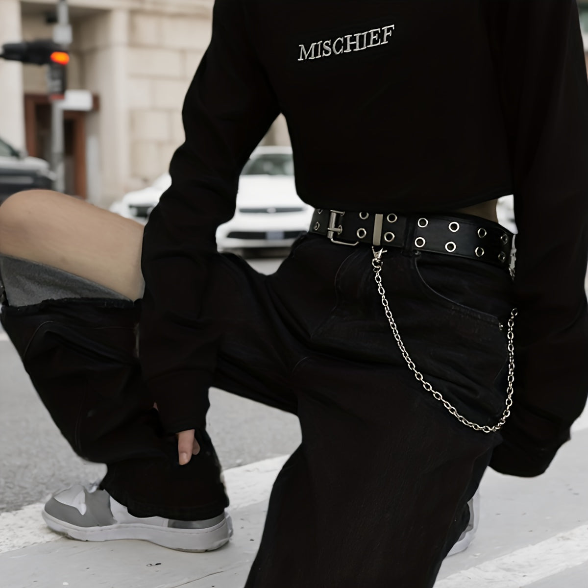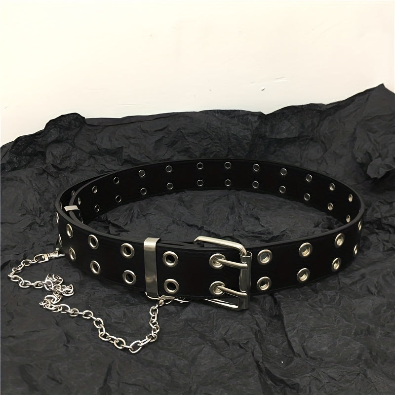 Add a touch of vintage punk style to your outfit with this unisex belt. The detachable waist chain adds an edgy twist. A perfect Valentine's Day gift!