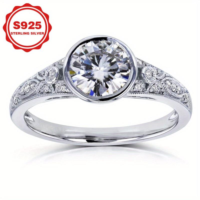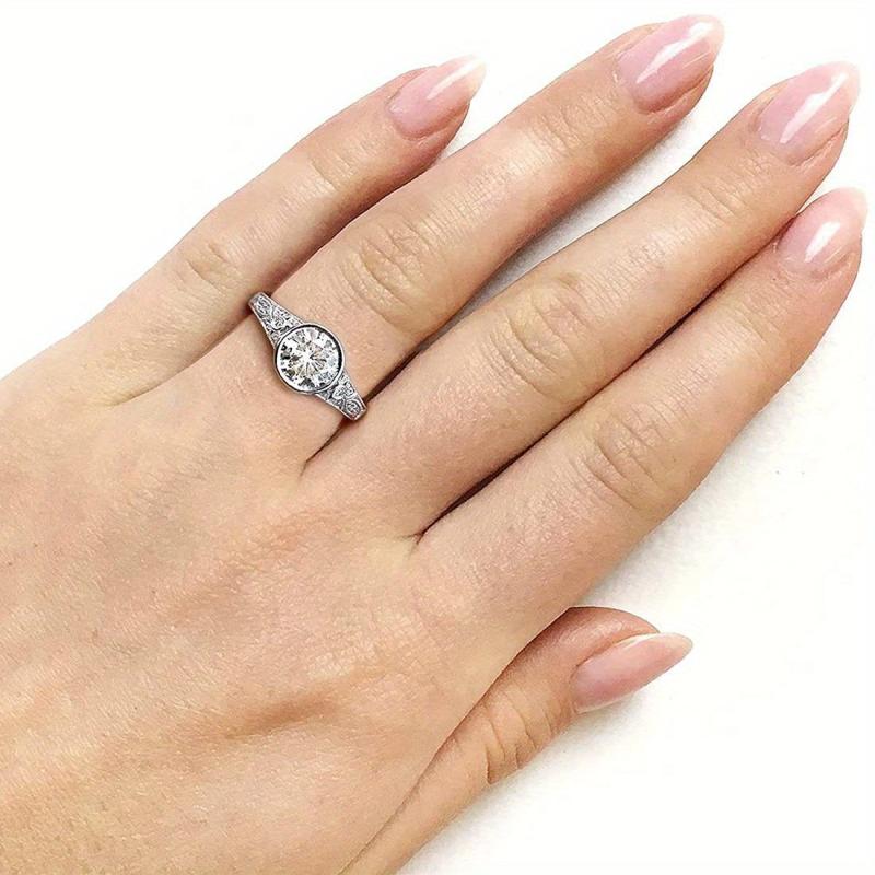 This stunning ring features a 23ct synthetic zirconia set in 925 silver with platinum plating, an exquisite choice for an engagement or wedding ring. Personalize your special day with this vintage-inspired design.