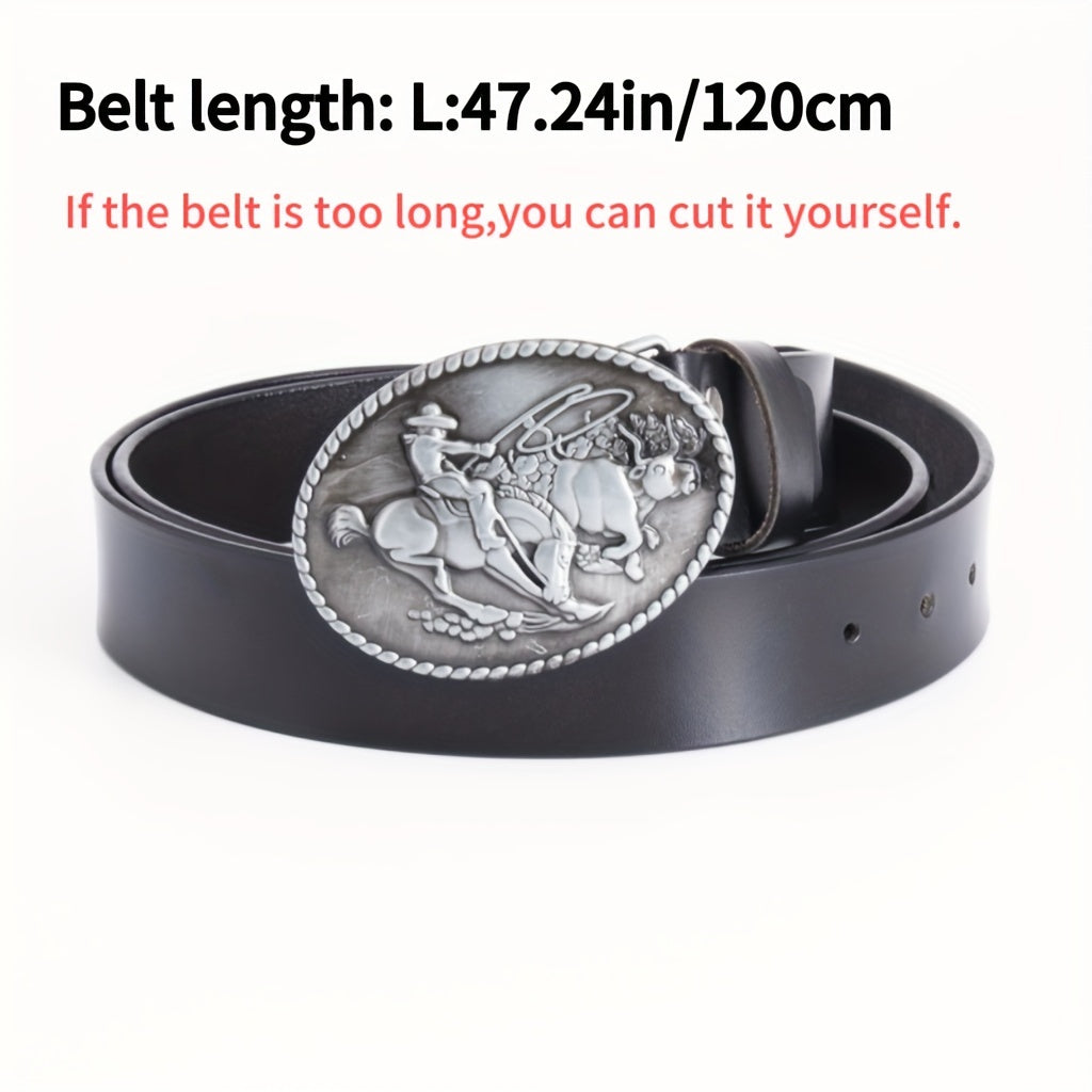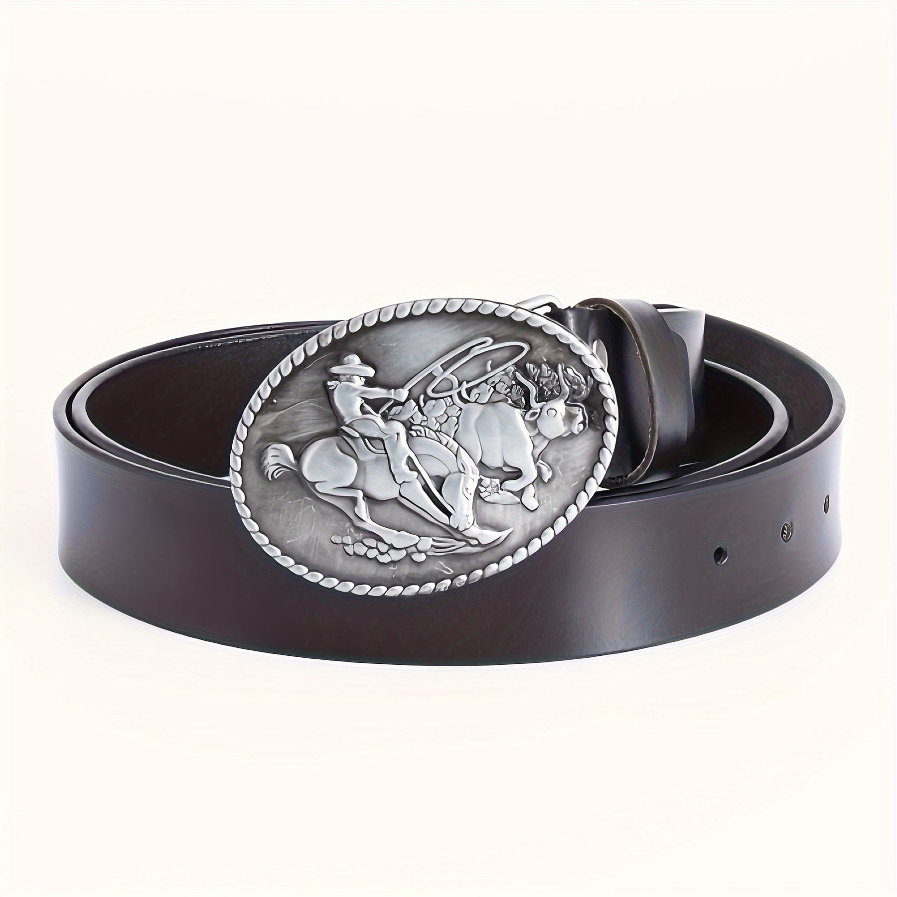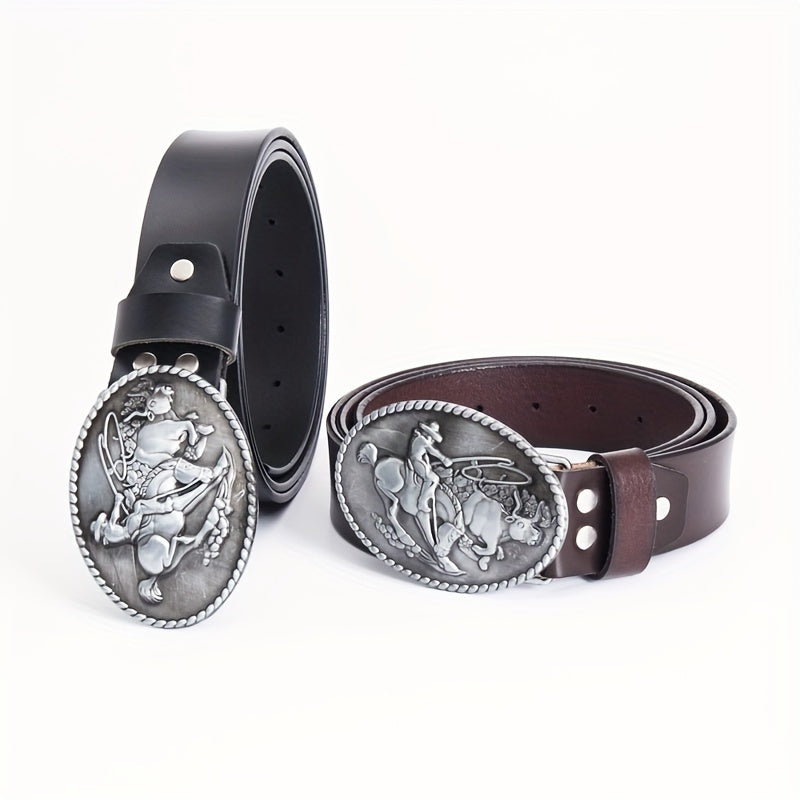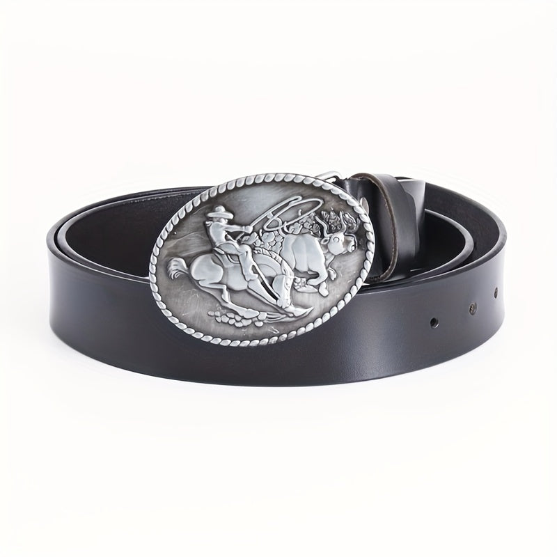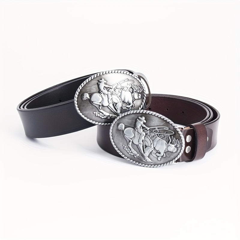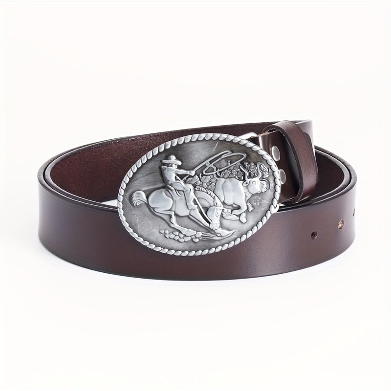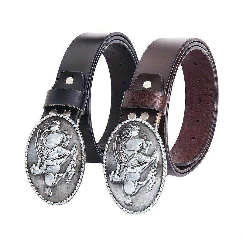 Vintage Western Cowboy Leather Belt with Alloy Buckle