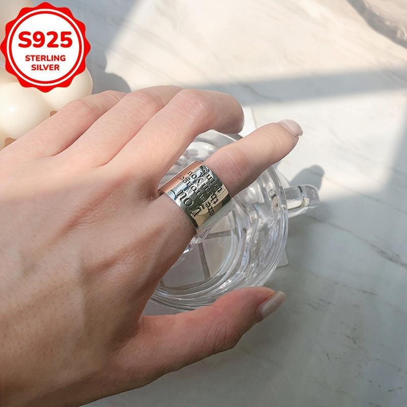 This wide band letter polished ring is hypoallergenic and fashionable, suitable for all seasons. It can be worn on any finger for a versatile look.