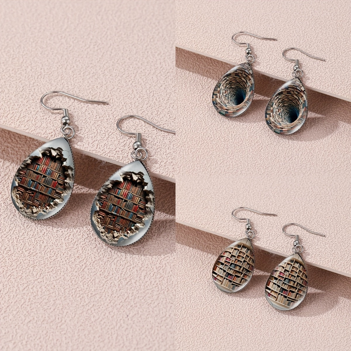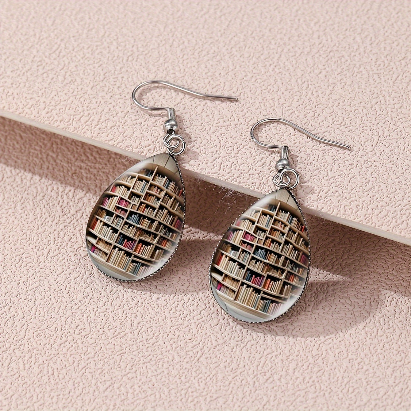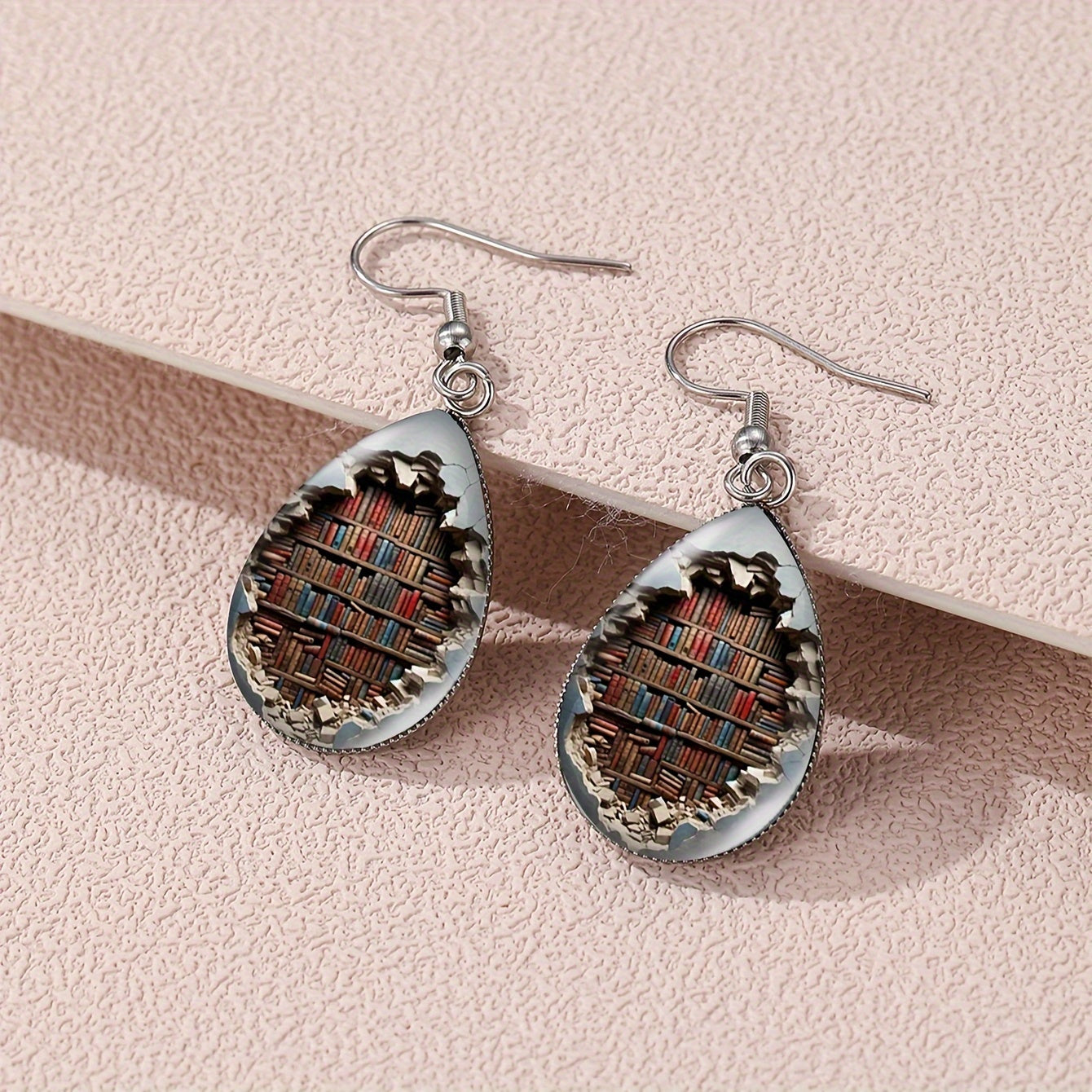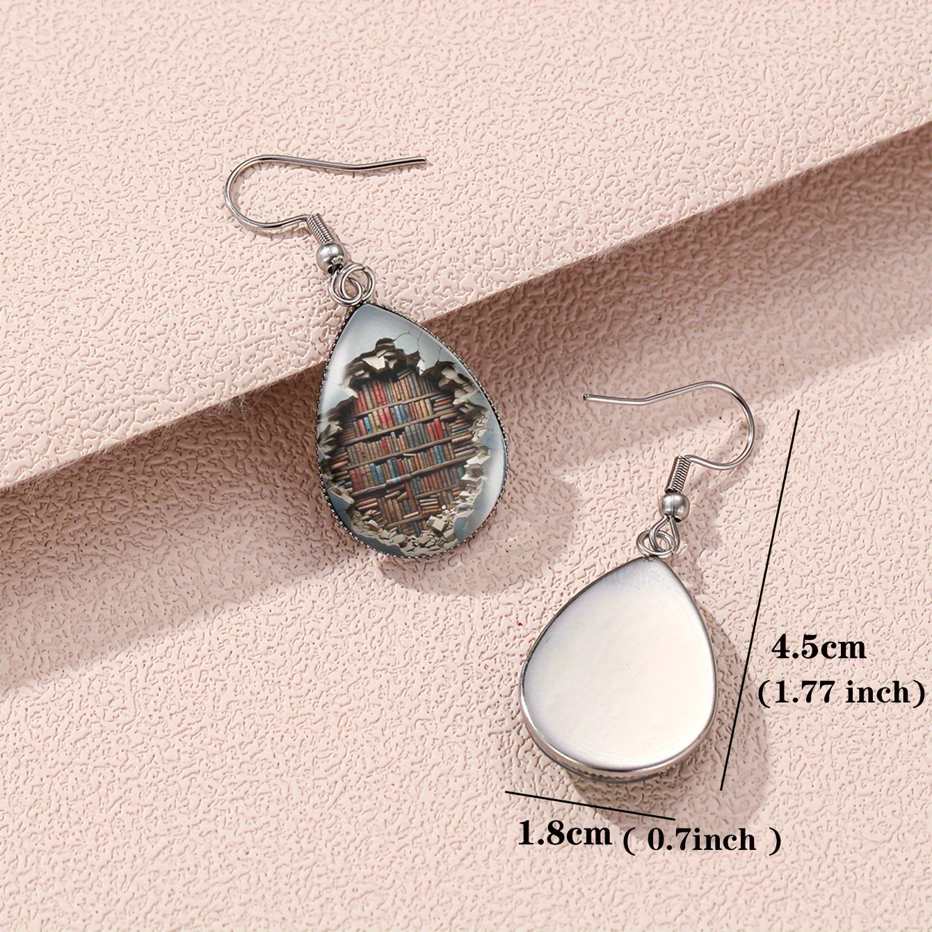 Wall Hole Book Earrings Bookshelf Print Dangle Earrings for Men