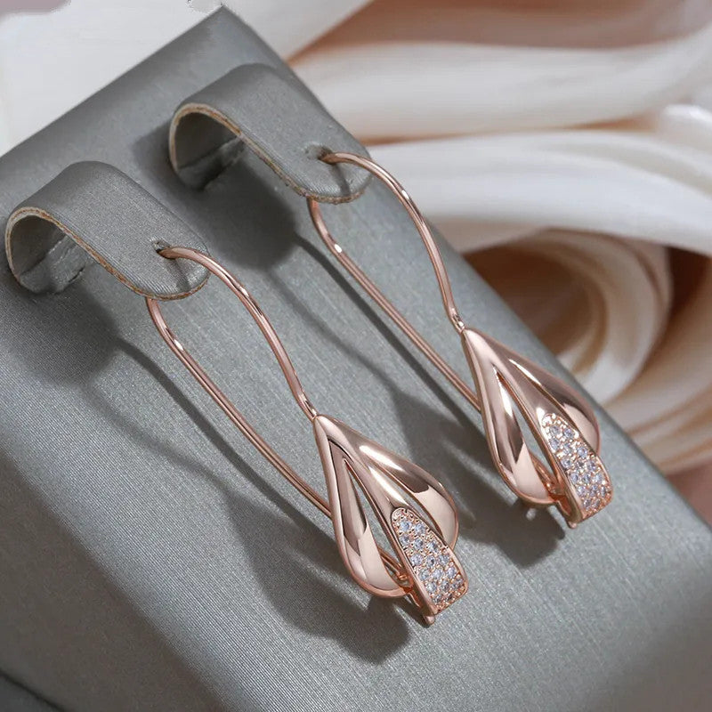 Water Drop Golden Dangle Earrings Zircon Wedding Jewelry Vintage Long Earrings