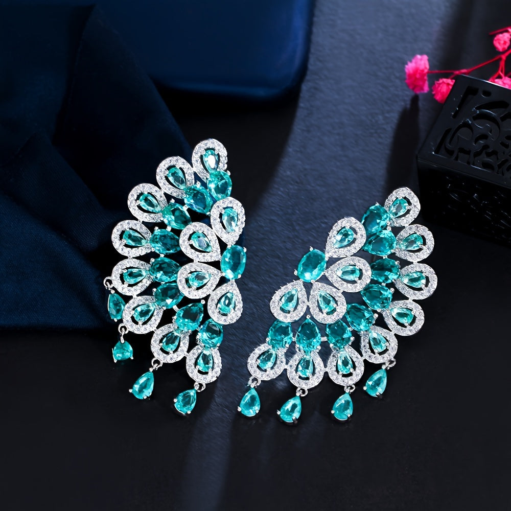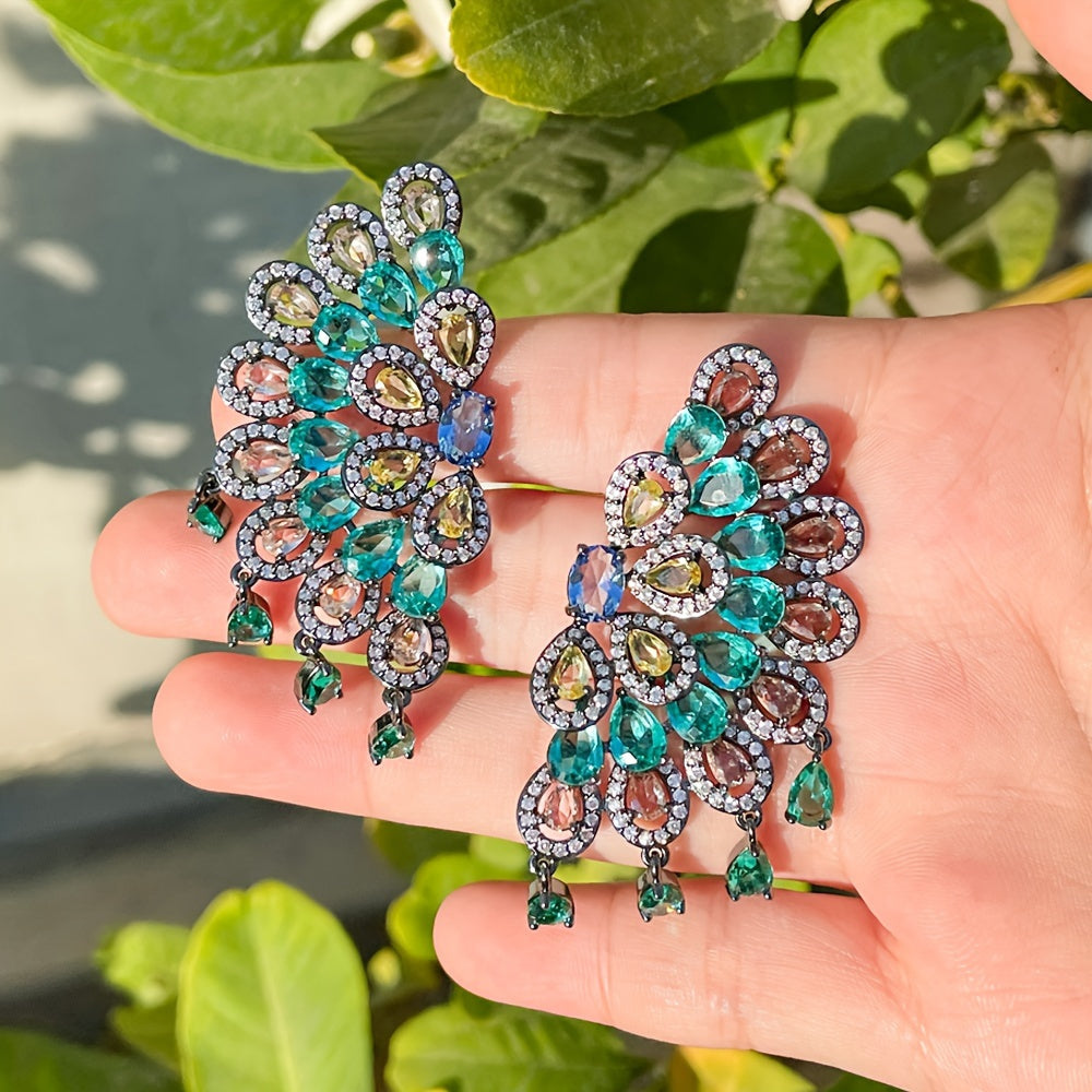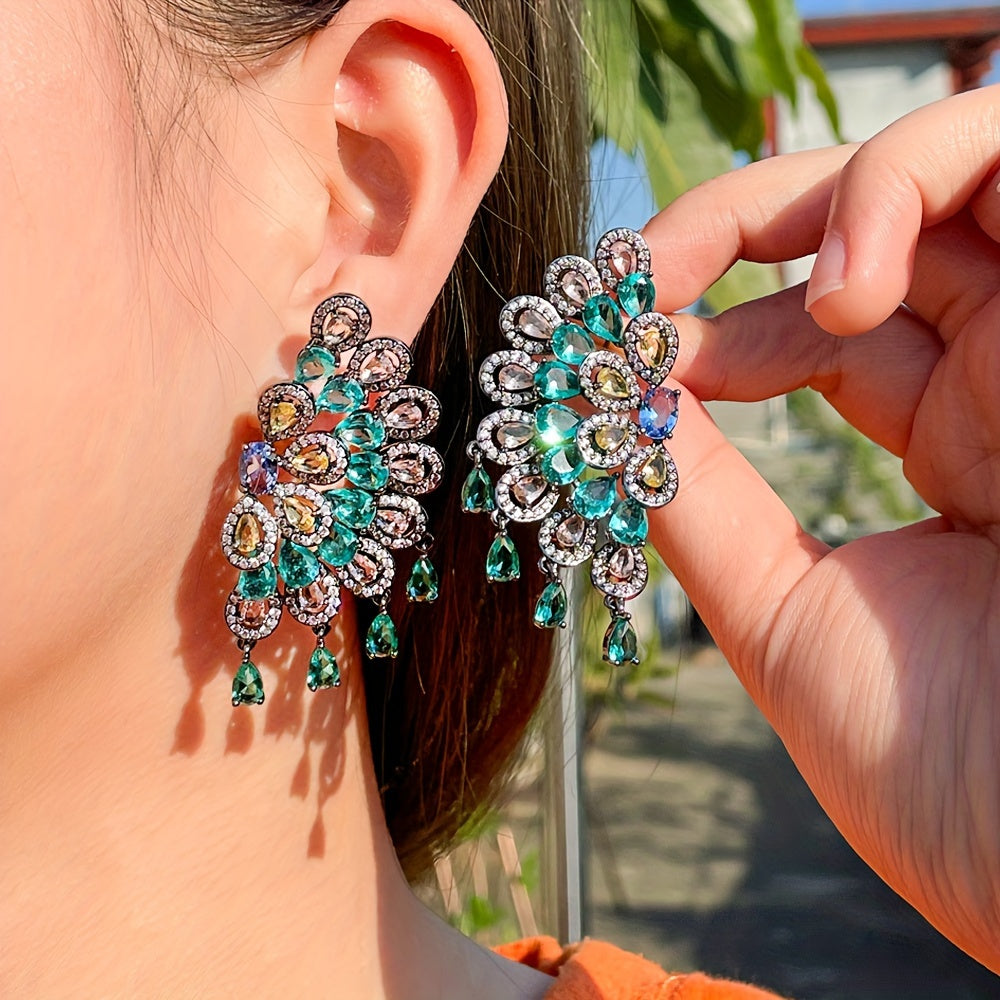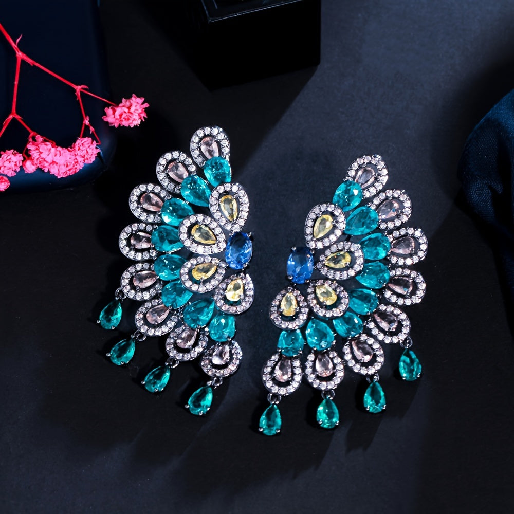 These vintage ethnic earrings feature large symmetrical water drop zirconia design, perfect for weddings and parties.