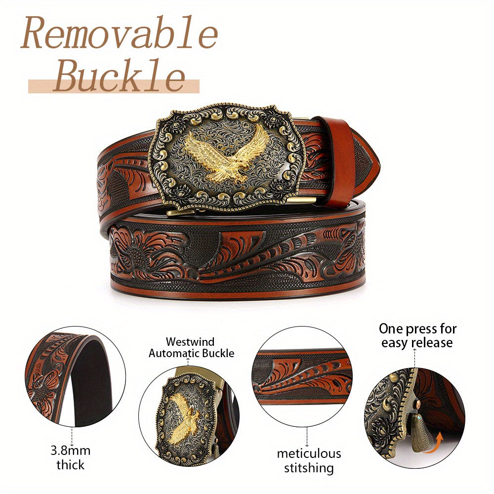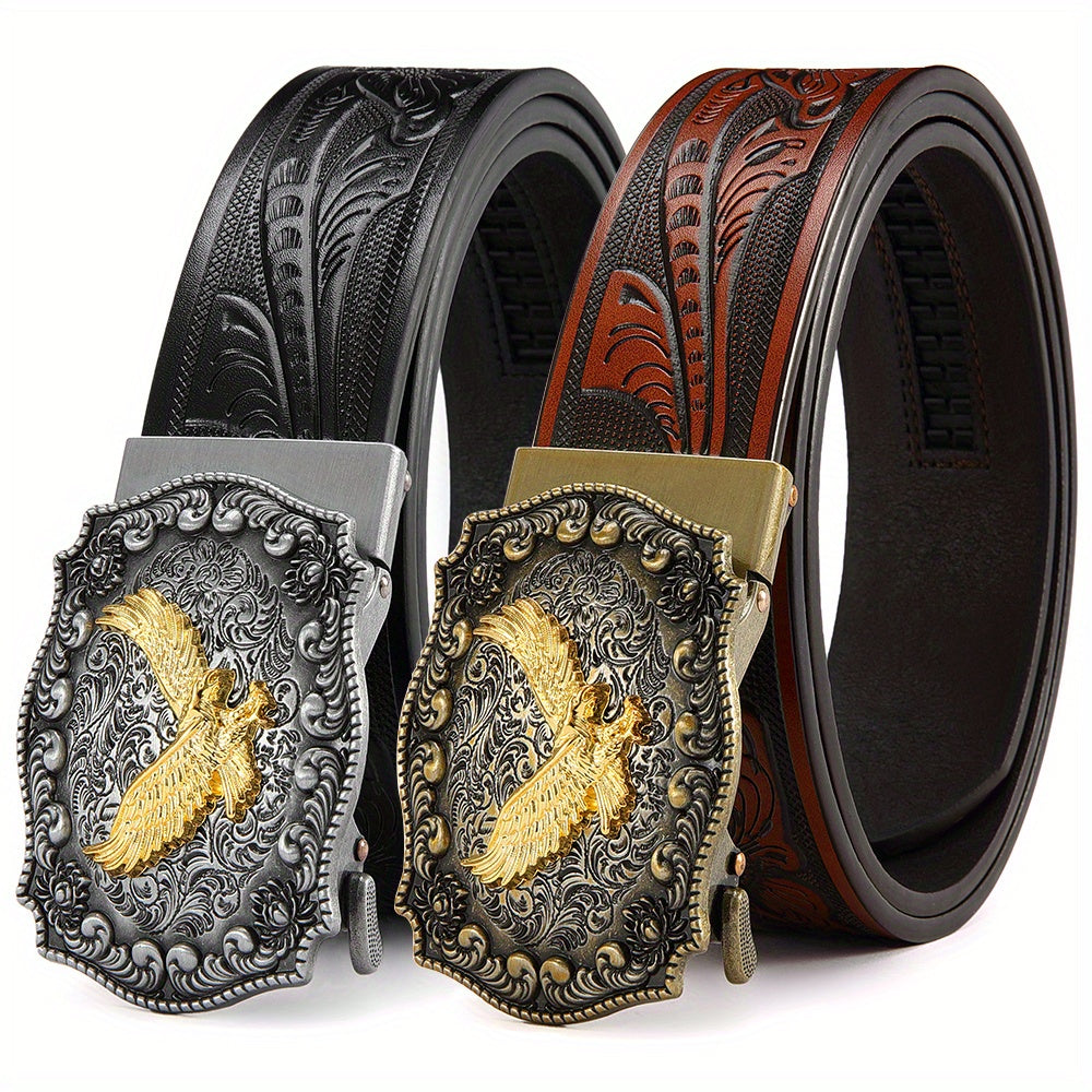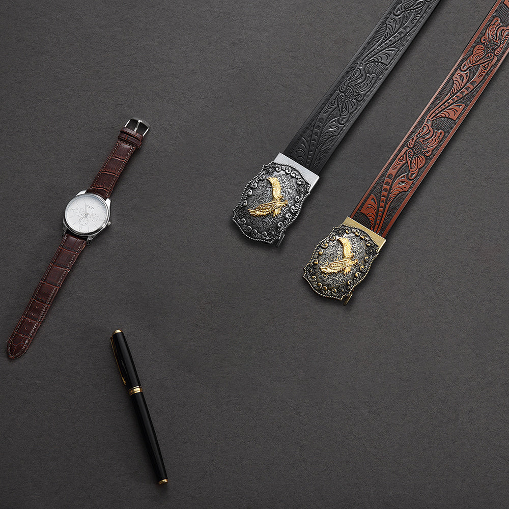 Western Cowboy Belt 2pcs Flower Carving Belt Adjustable Belt Pair