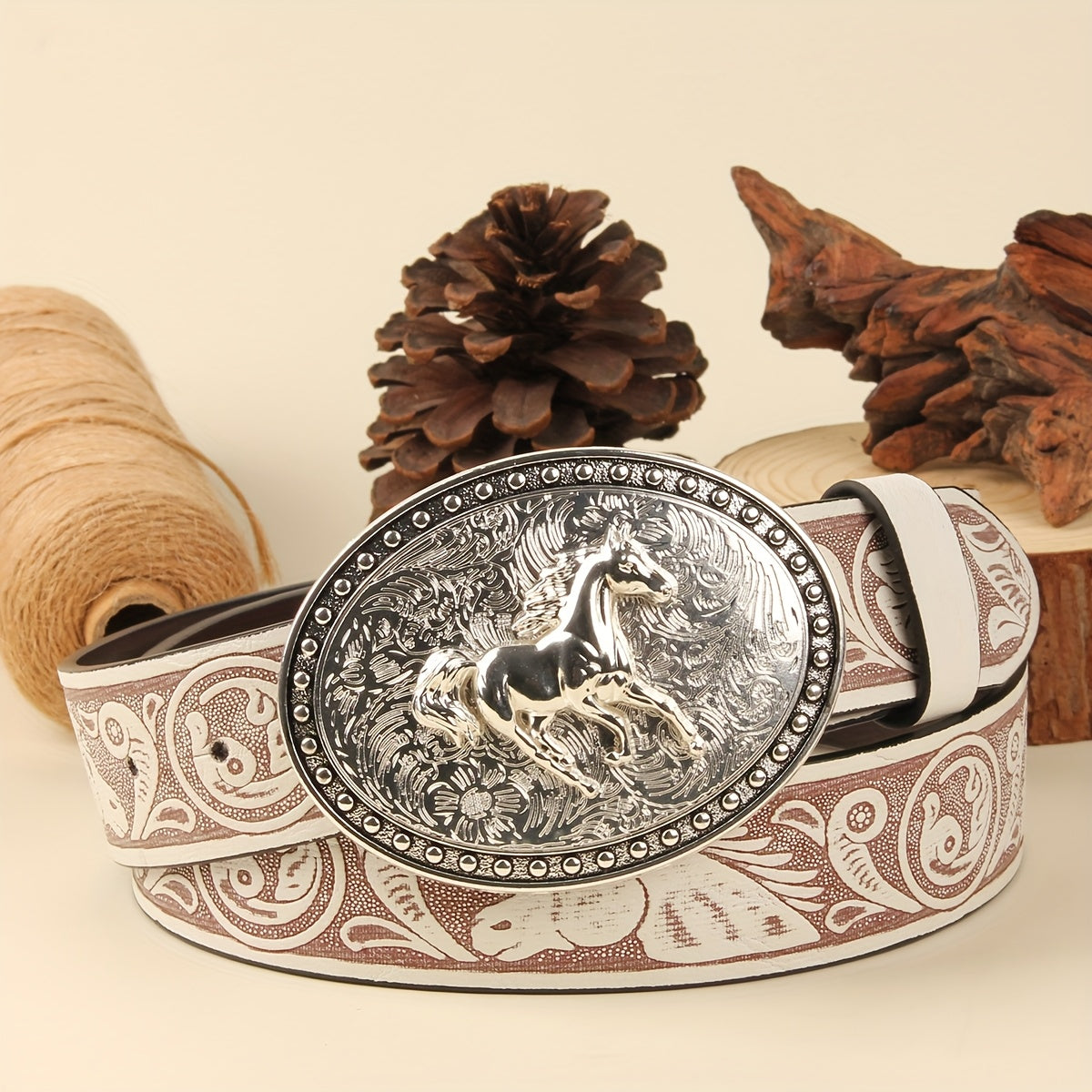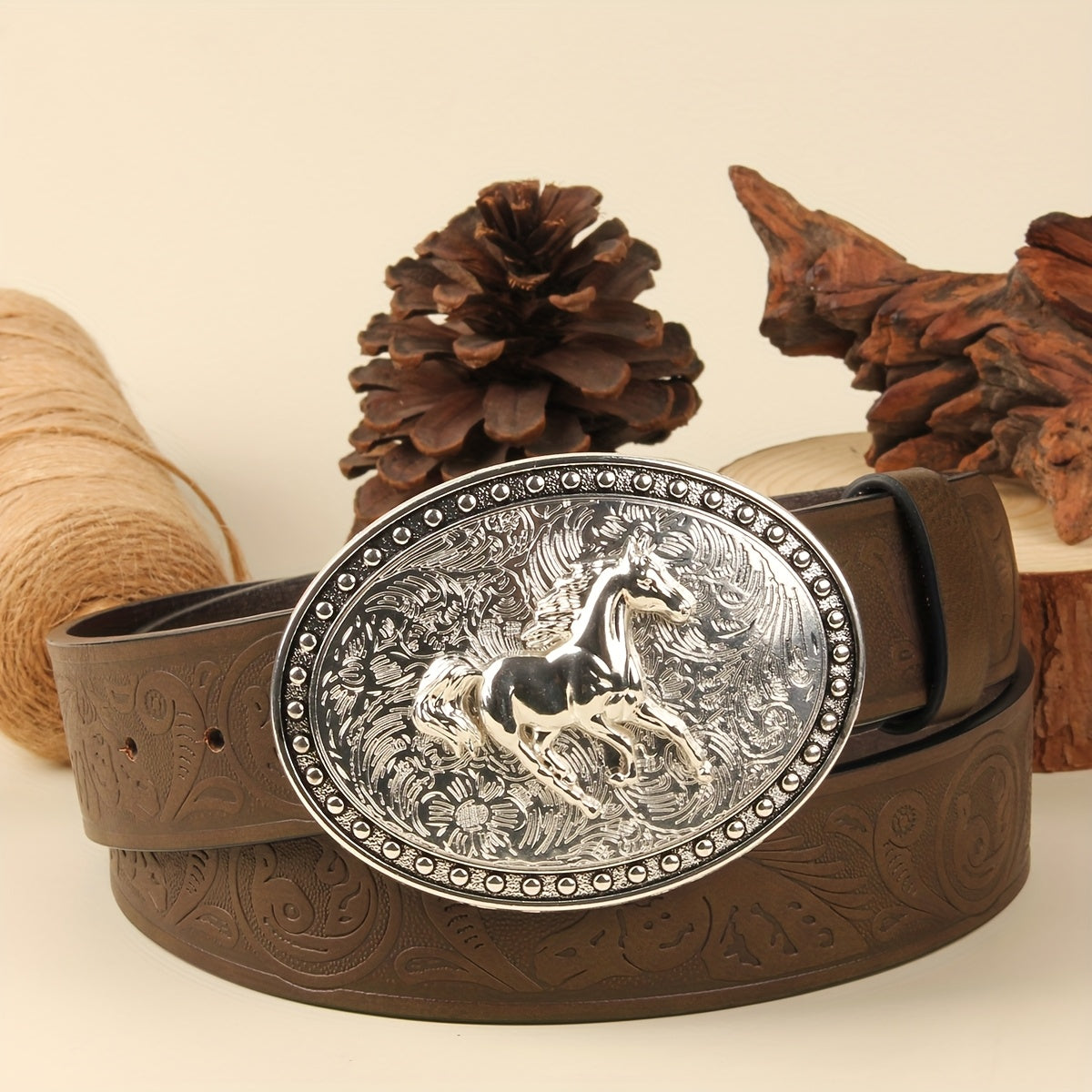 Western Cowboy Style Belt Buckle 3 Wide Silver Horse Elliptical Buckle