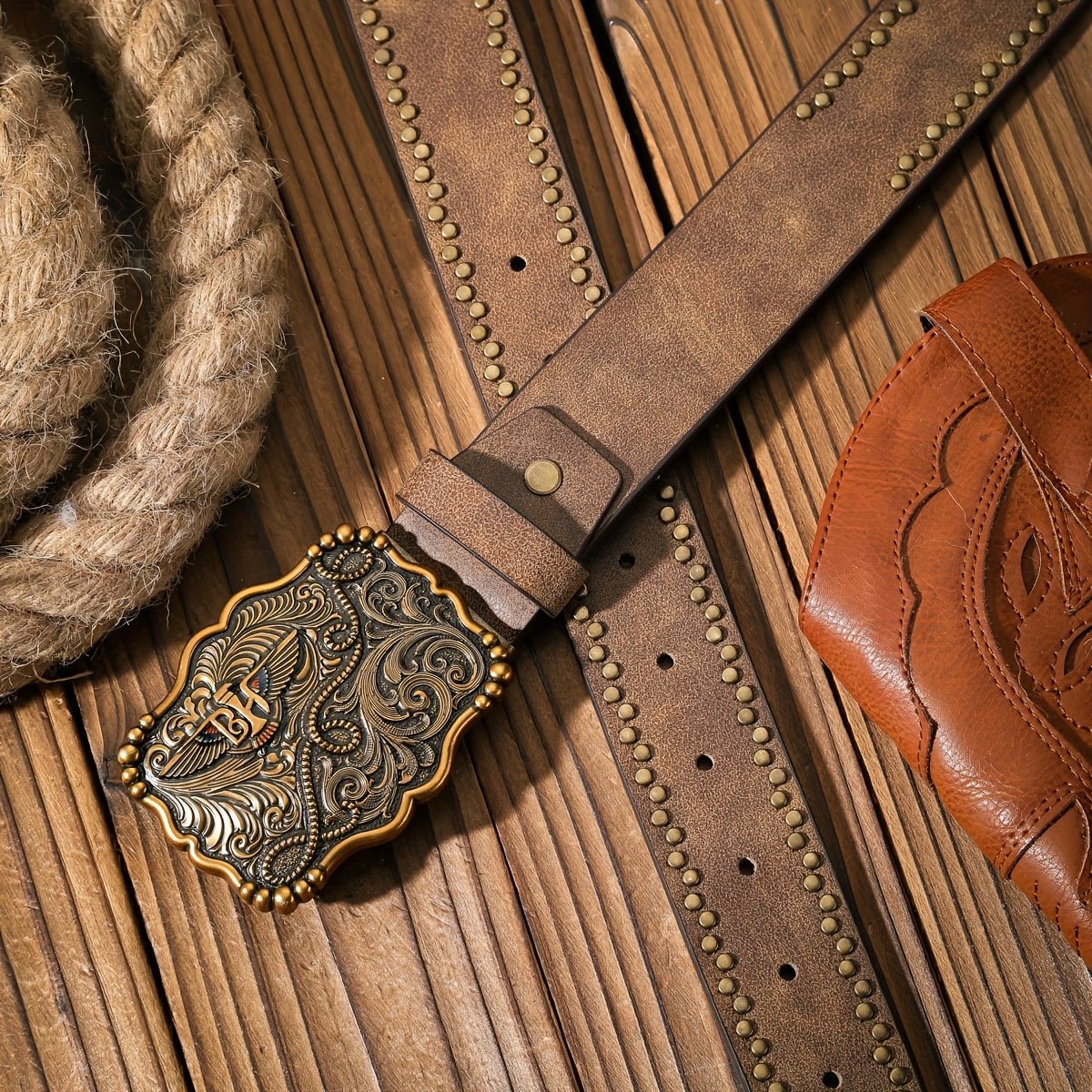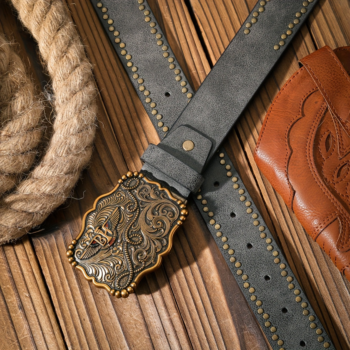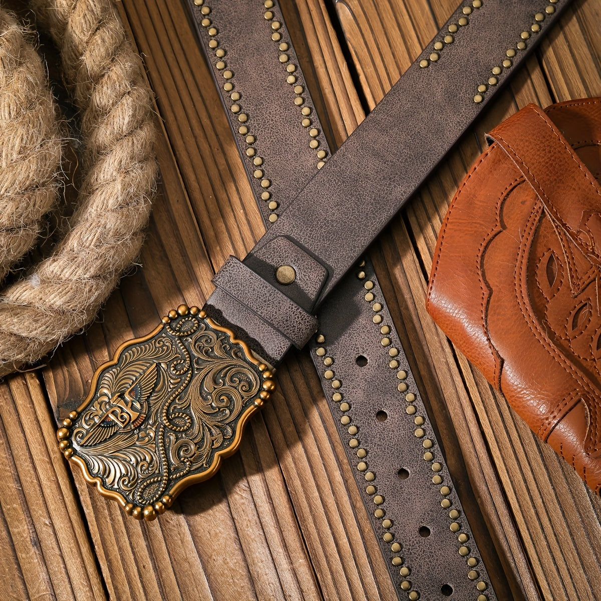 This Western style belt features a retro design with PU leather and studded accents, suitable for men, women, and teens for a casual look.