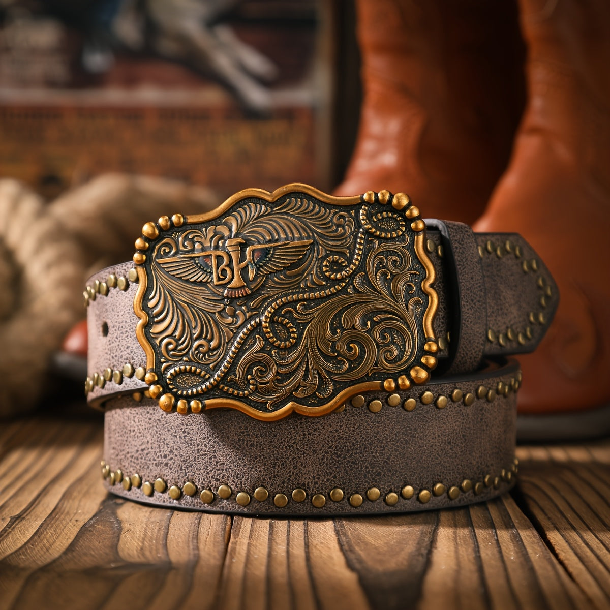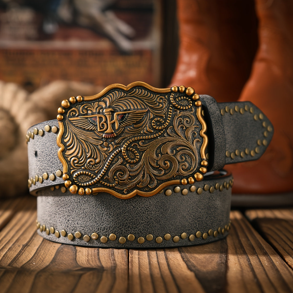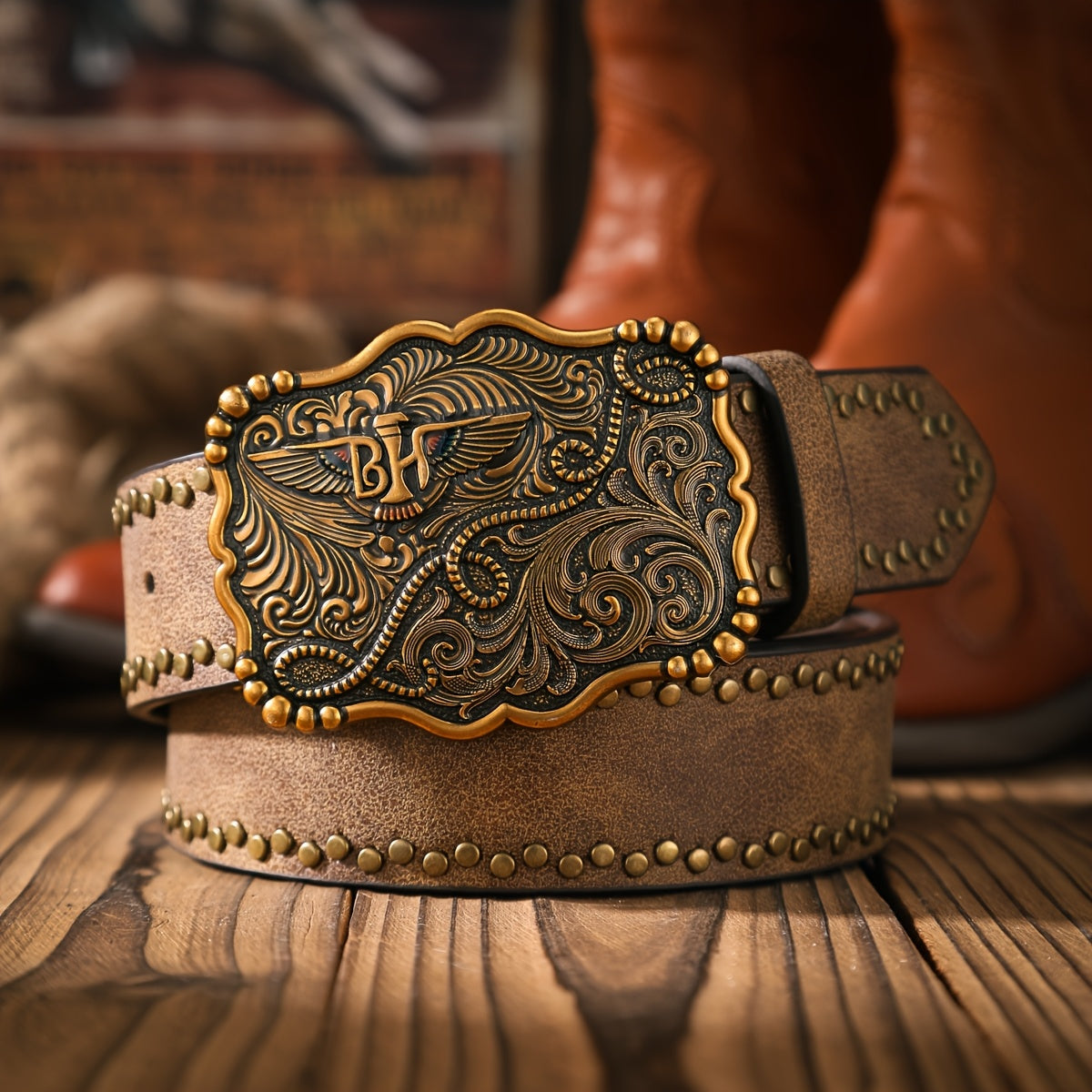 This Western style belt features a retro design with PU leather and studded accents, suitable for men, women, and teens for a casual look.