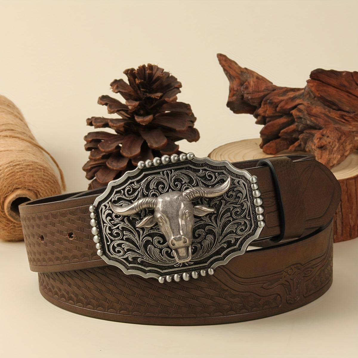 Western Style Cowboy Belt Buckle with Faux Leather Belt