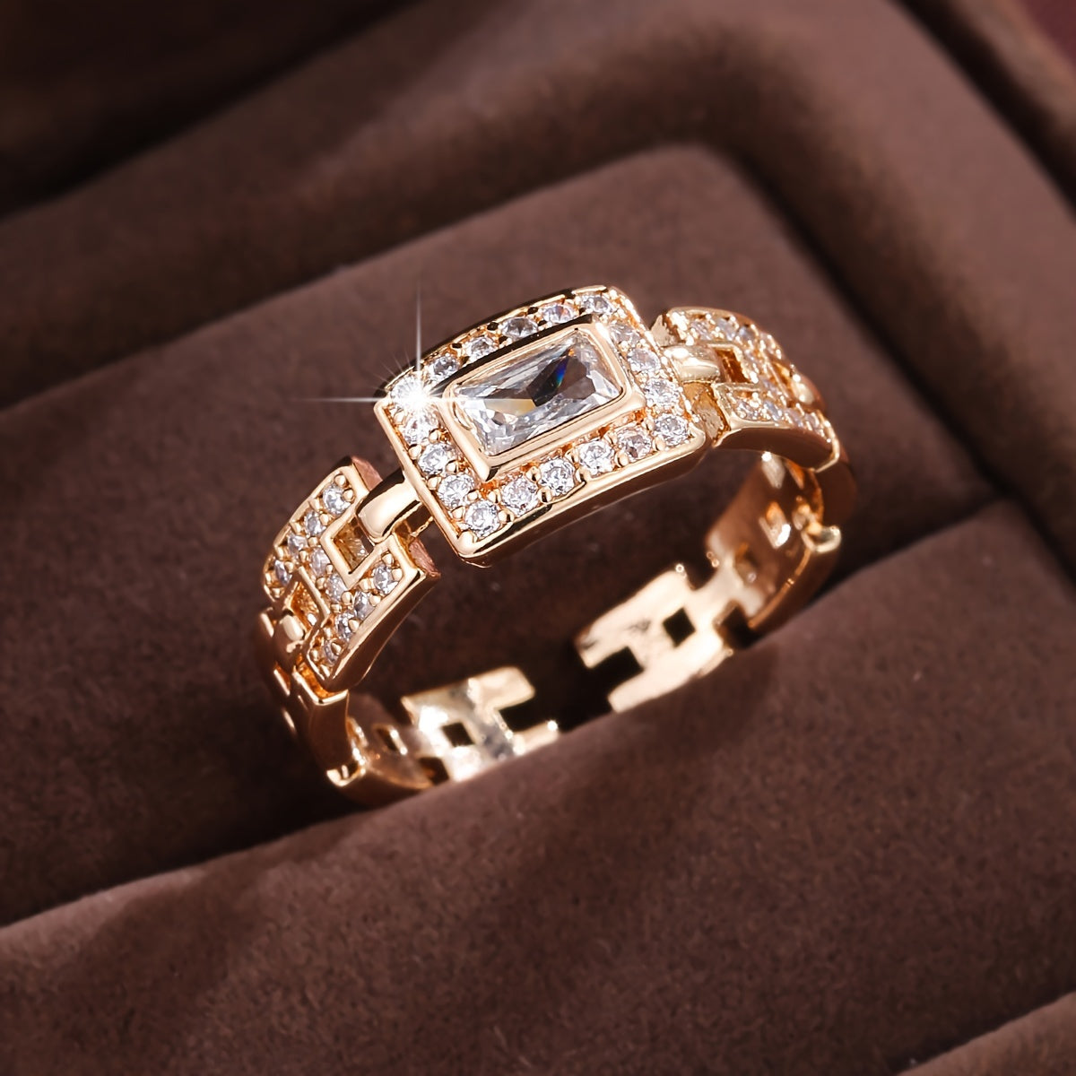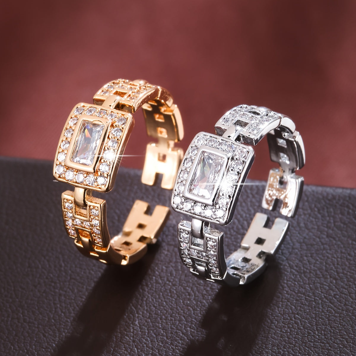 Elegant and stylish wide zirconia ring designed for women with a high sense of fashion, perfect for wearing on the index finger.