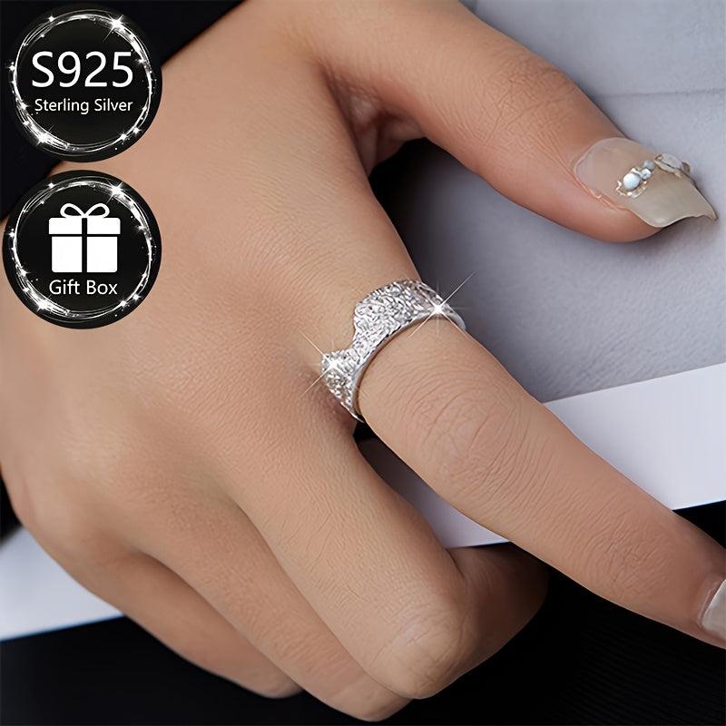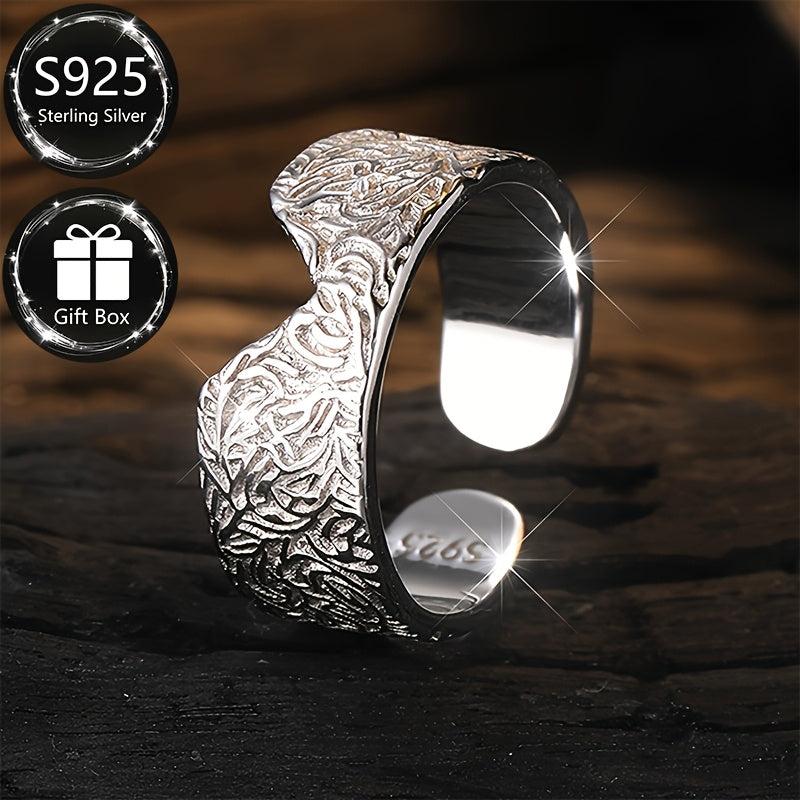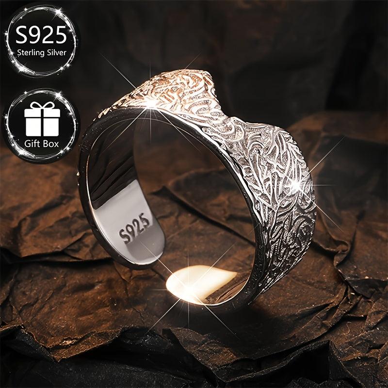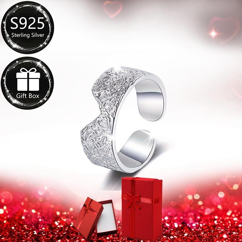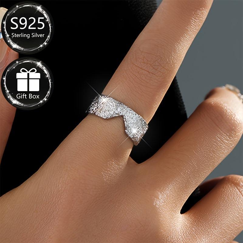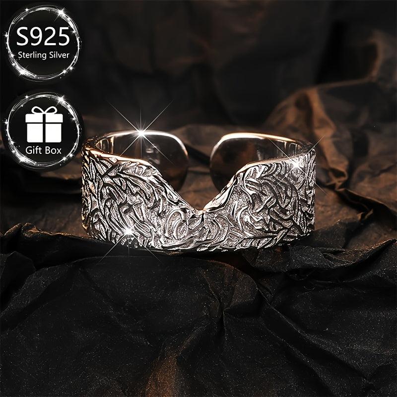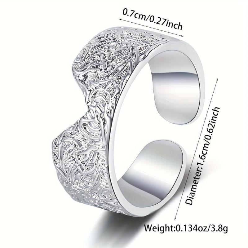 Add a touch of elegance to your party outfit with this vintage-inspired open ring. Made of 925 sterling silver, this ring features a tinfoil texture and a unique V-shaped design.