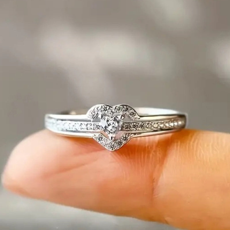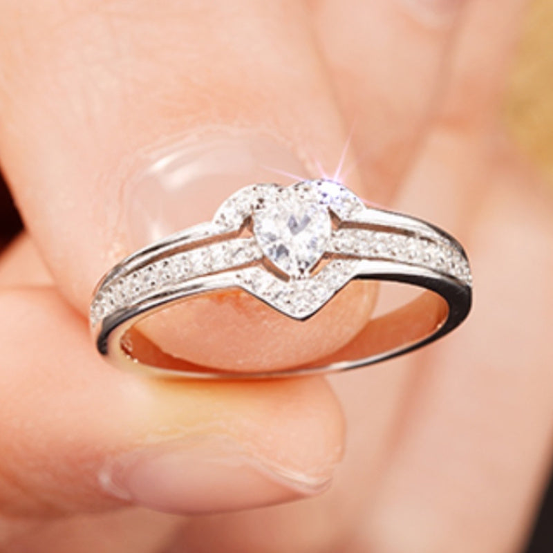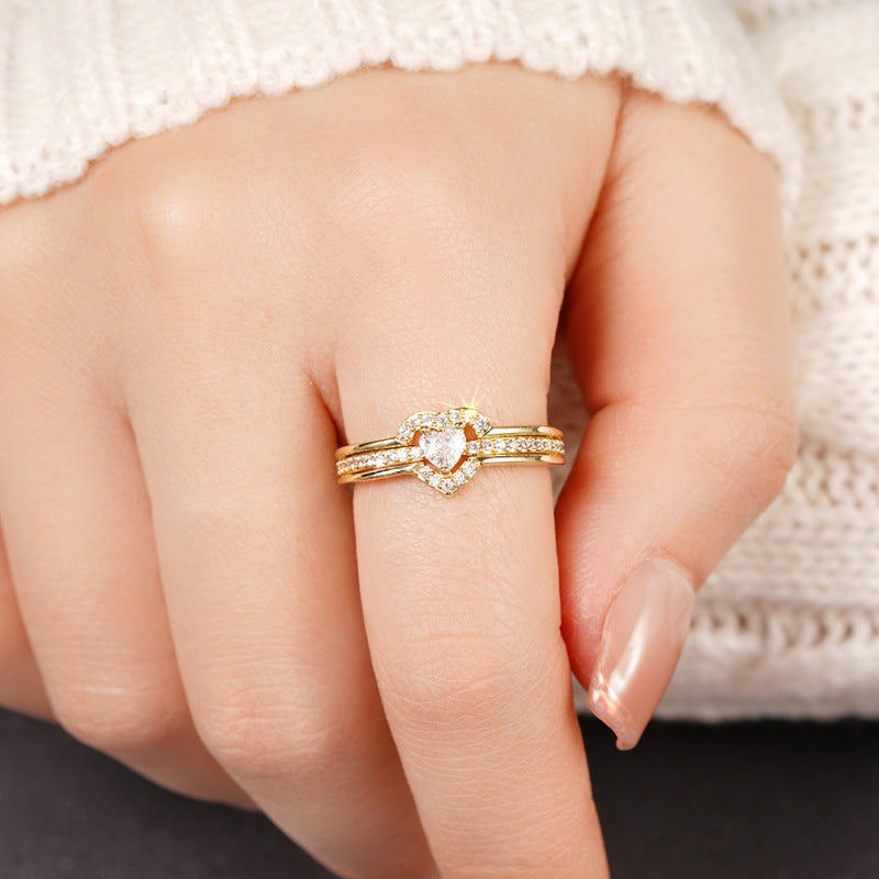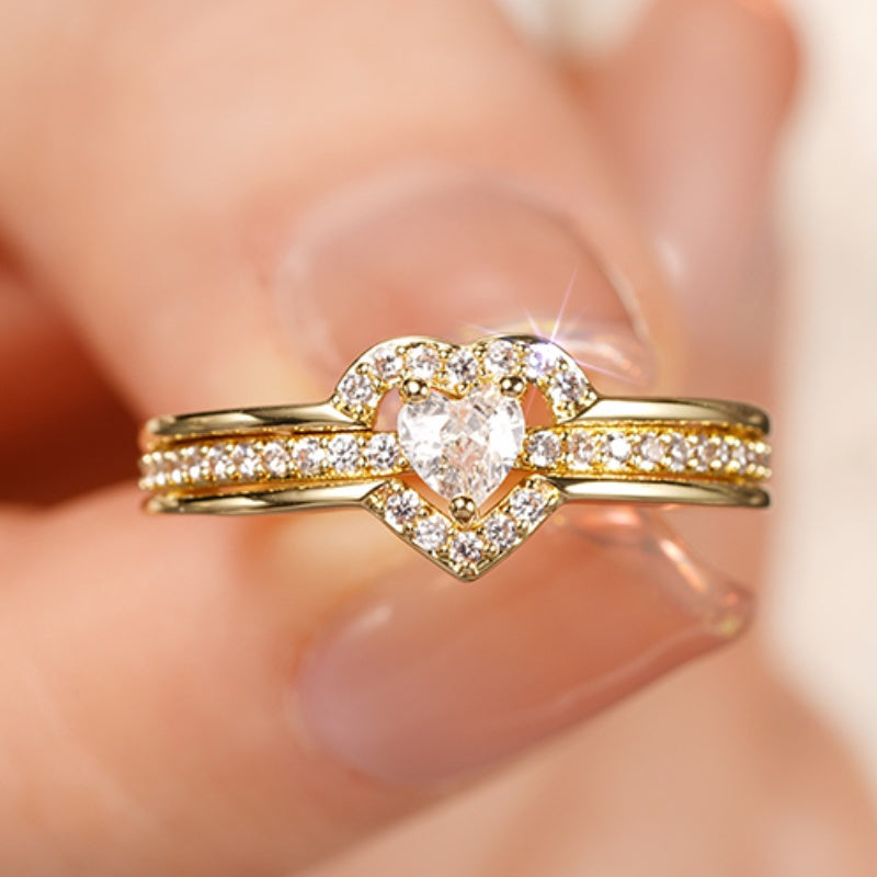 Women's Bling Heart Cluster Engagement Ring Golden Plated Wedding Band