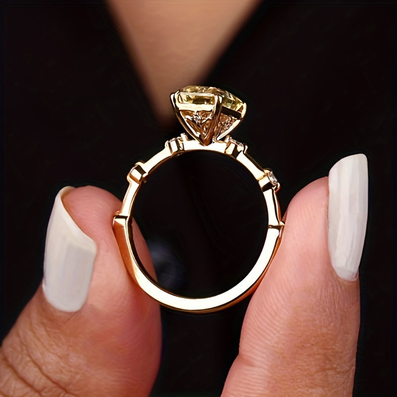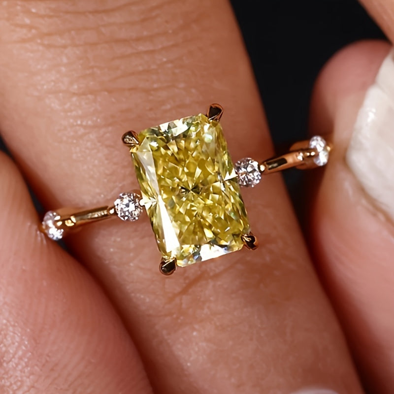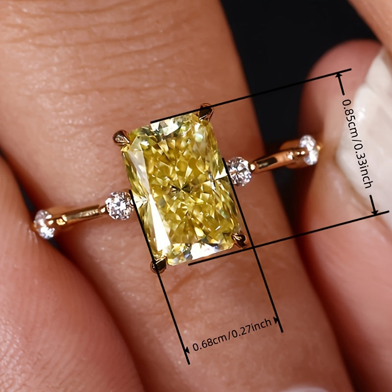 This stunning engagement ring features a rectangular synthetic gemstone set in a 4-prong setting on a copper base. It is perfect for all-season wear and makes a great gift for November birthdays.