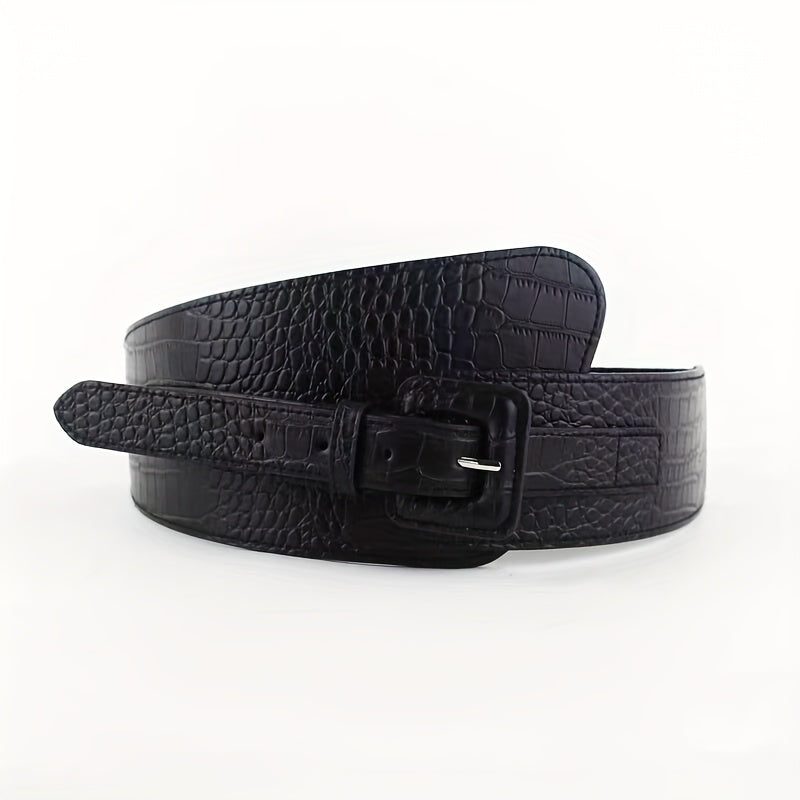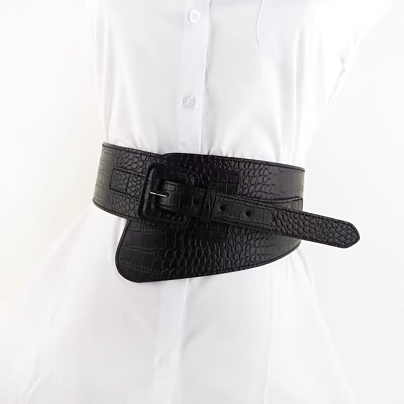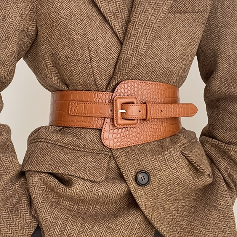 Enhance your outfit with this versatile extra wide belt designed for coats, dresses, sweaters, and skirts. The stylish buckle adds a trendy touch to your look.
