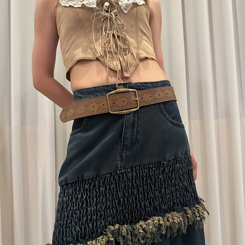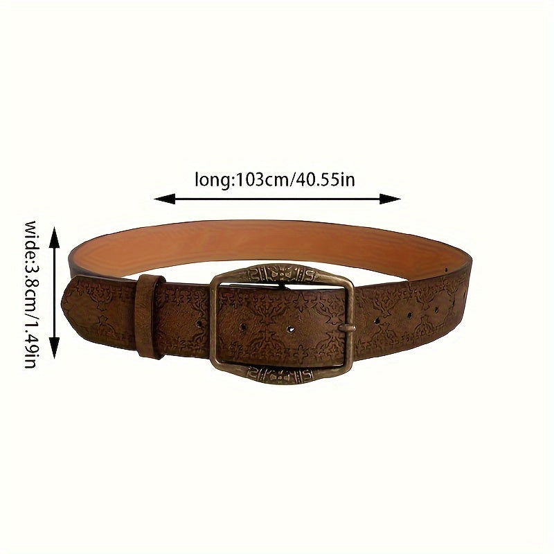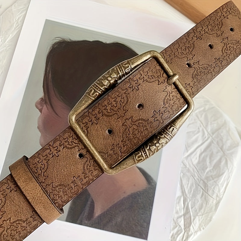 Elevate your casual look with this women's floral embossed belt featuring a brown retro design. Pair it with jeans for a stylish ensemble.