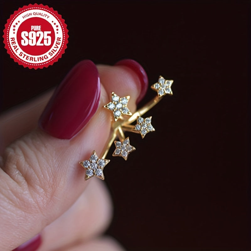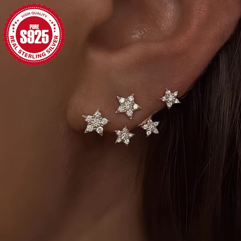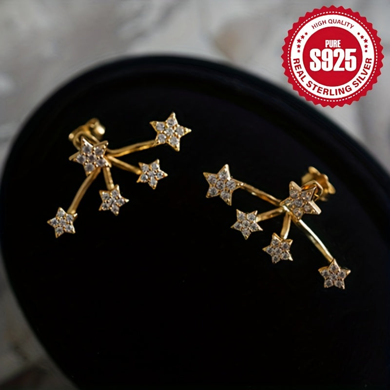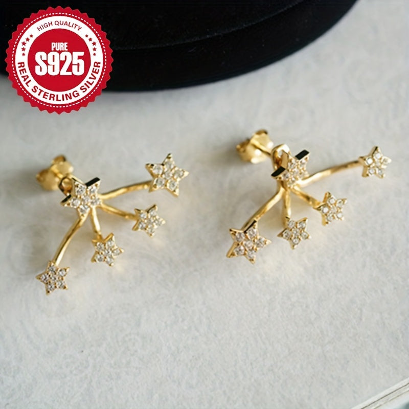 Elegant pair of women's earrings with a flower holder design. Made with retro shining star synthetic zirconia in a low-allergy 925 silver setting. Perfect for everyday wear.