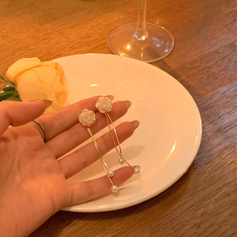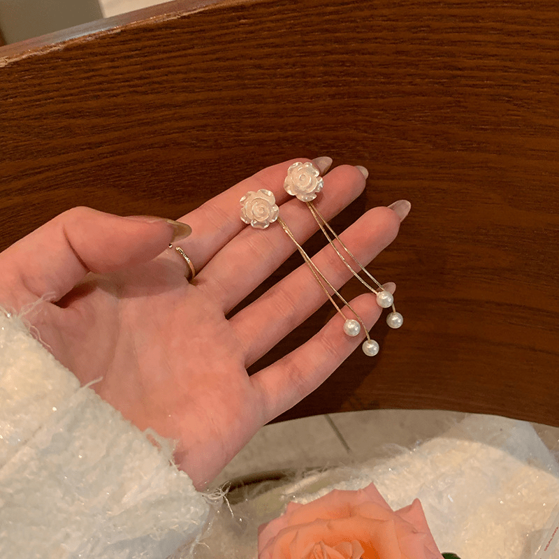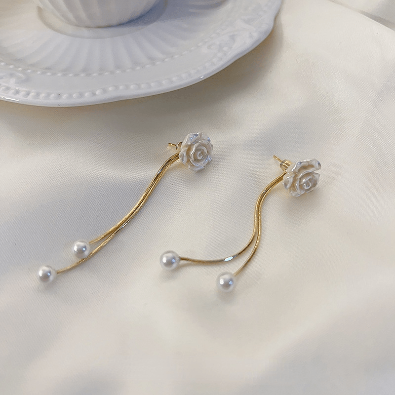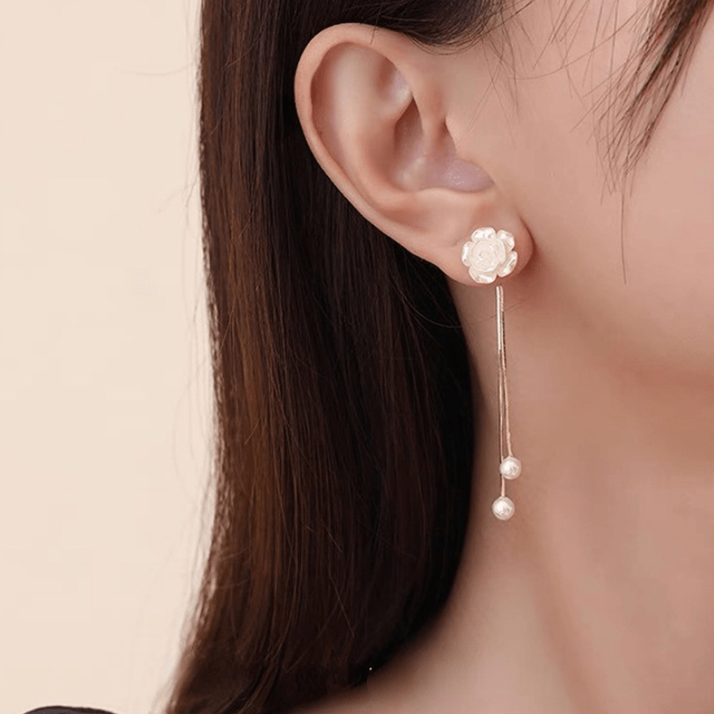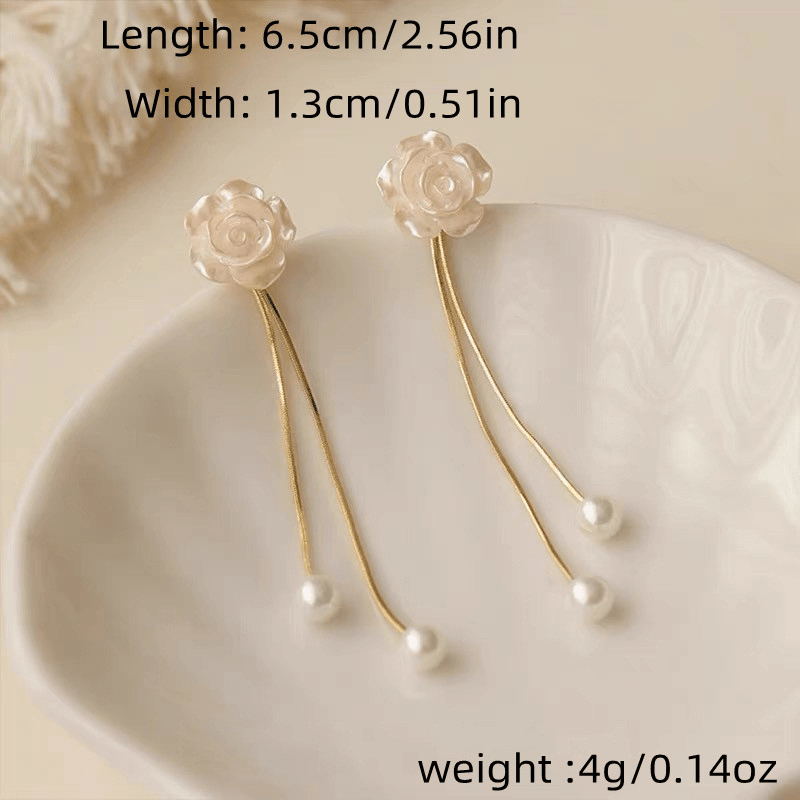 These earrings feature a Japan and South Korea style design with faux pearls and tassel dangle accents. They are made of alloy with synthetic gems, suitable for all seasons and daily wear.