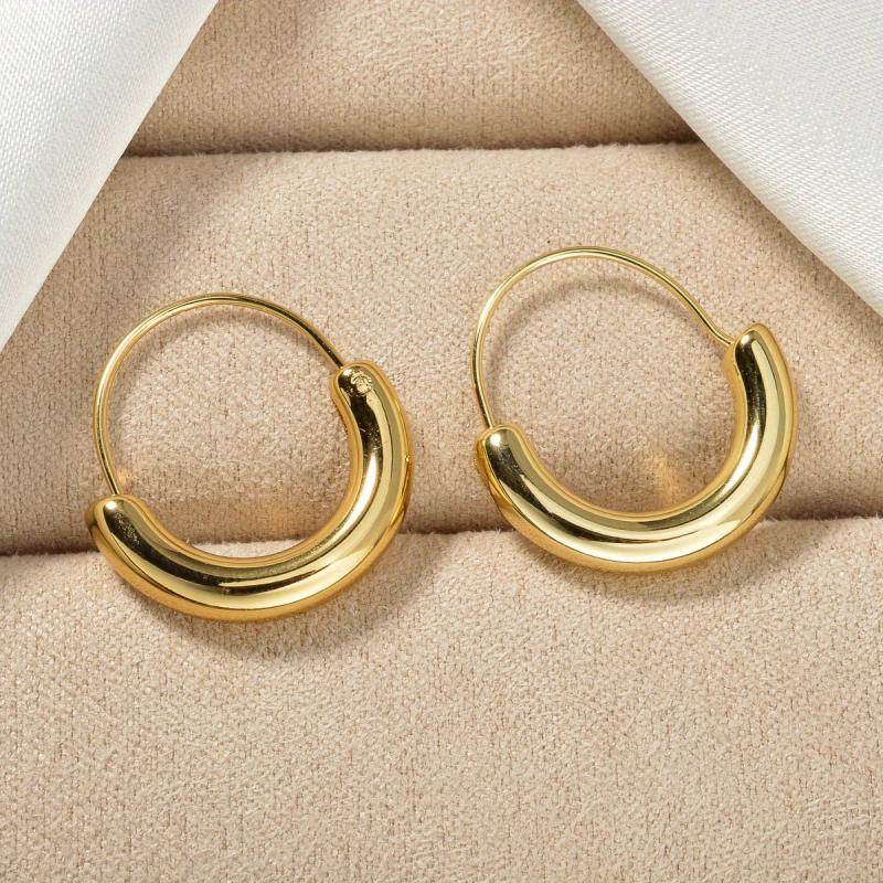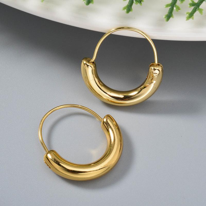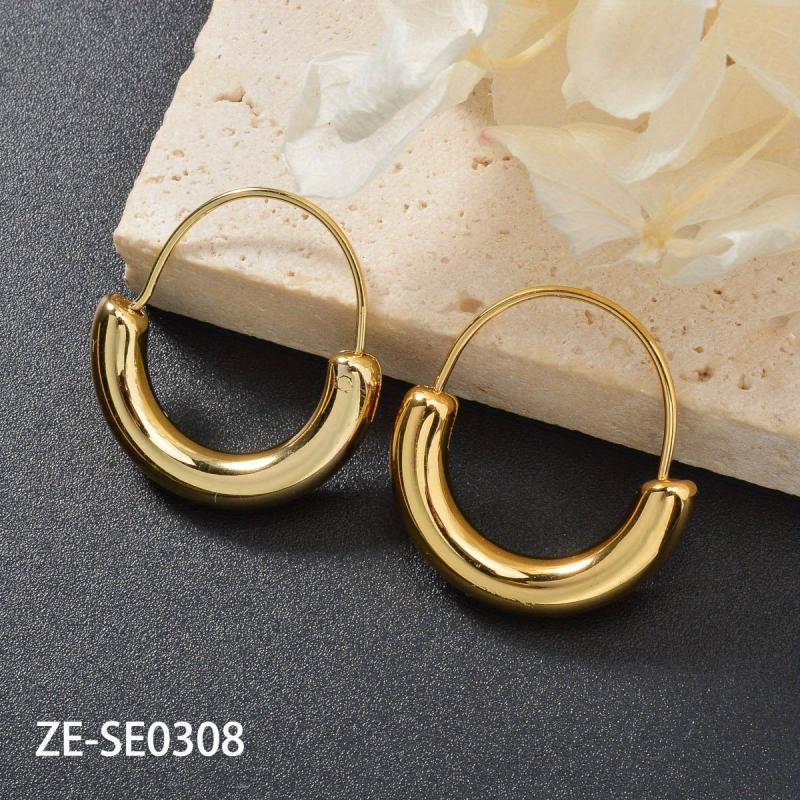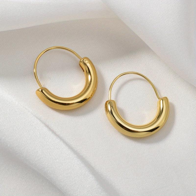 Elevate your look with these versatile hoop earrings. Crafted from stainless steel, these earrings are ideal for daily wear or special occasions. The golden tone adds a touch of elegance and sophistication to any outfit.